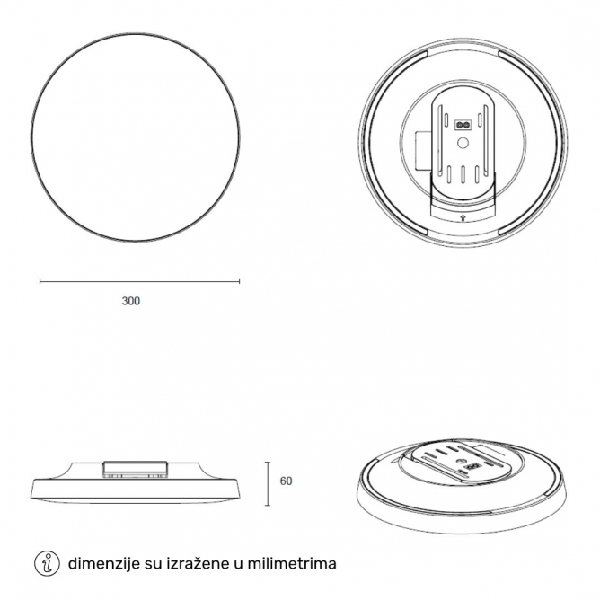 Plafonjera ima kvalitetan SMD2835 IC drajver, širok ugao svetlosti od 180°, 2500 lumena i verno reprodukovanje boja (Ra>80). Kućište je izrađeno od izdržljivog PP/ABS materijala sa belim difuzorom koji lepo rasipa svetlo. Dolazi sa ugrađenim terminalnim blokom, prečnika Ø300 mm, visine 60 mm, IP20 zaštitom i radnim vekom od 25.000 sati.
