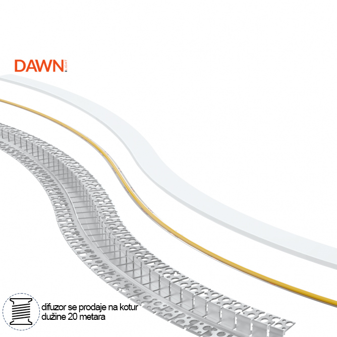 Ovaj profil je fleksibilan i prilagodljiv, što ga čini idealnim za različite aplikacije, od osvetljenja u enterijerima do dekorativne rasvete na spoljašnjim površinama. Zahvaljujući svojoj fleksibilnosti, omogućava kreativnu slobodu u oblikovanju osvetljenja, pružajući istovremeno stabilnu podršku i zaštitu LED trakama.