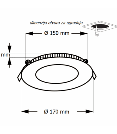 Dimenzije otvora za ugradnju Ø 150 mm