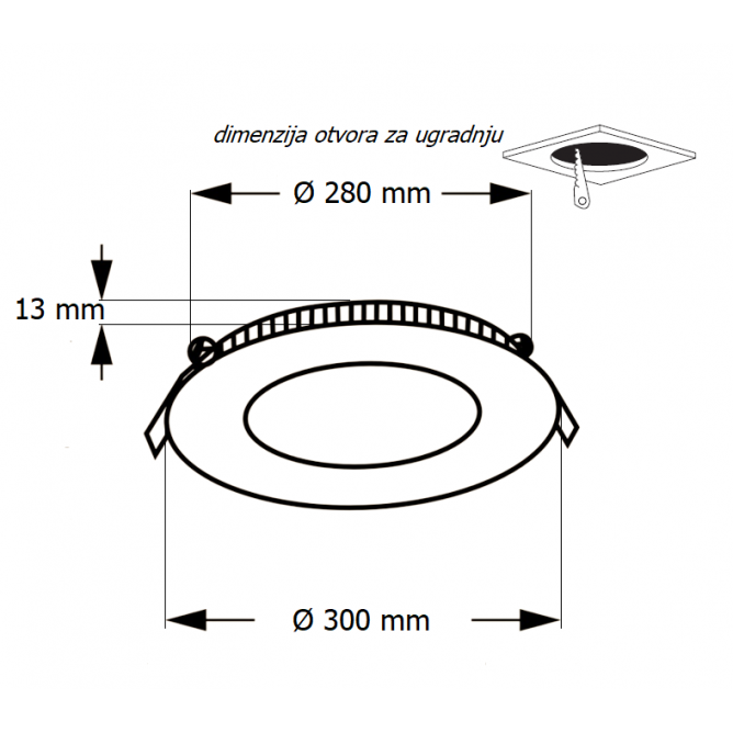 LED panel za ugradnju u spuštene plafone, snage 24W, sa mogućnošću izbora temperature svetlosti (3000K/4000K/6000K) putem CCT prekidača na telu panela. Panel ima beli ram, vrhunsku završnu obradu i perfektno raspoređene diode bez tamnih tačaka, pružajući ravnomerno osvetljenje u prostoru.