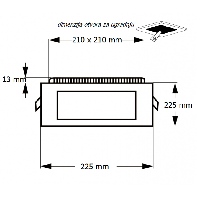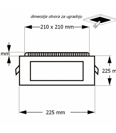 Dimenzije otvora za ugradnju 210 x 210 mm