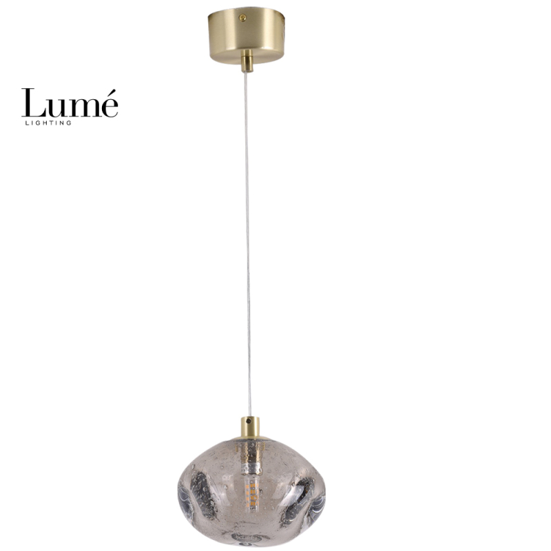 Visilica Regina 3 sa staklom sive boje i jednim grlom G9. Savršena za trpezarije i u kuhinjama iznad šankova i pultova.