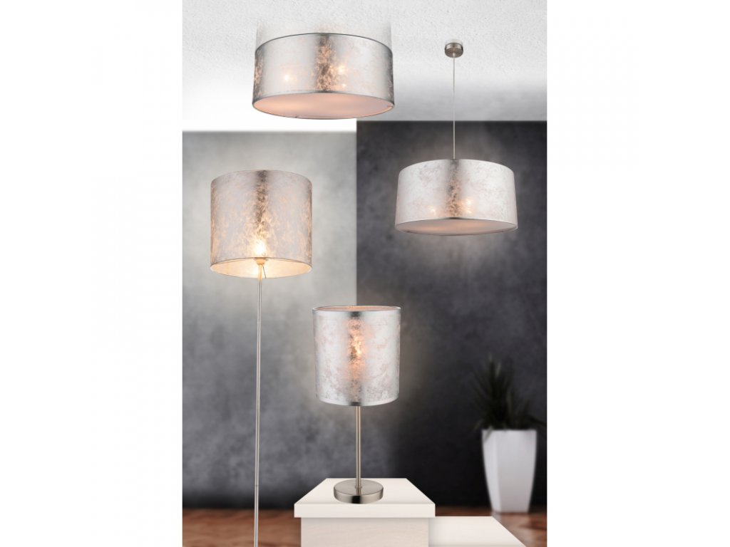 Boja niklovan mat | srebrno Material metal | plastika | tekstil Promer (mm) 260 Težina (g) 850 Visina (mm) 500 Izvor svetla Broj izvora svetlosti 1 Grlo / Zaglavlje E27 Pribor izvora svetlosti ne Snaga (W) 60