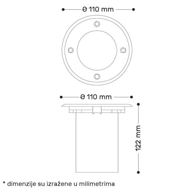 Podna ugradna svetiljka sa jednom GU10 sijalicom ima visoku zaštitu IP67, što znači da je potpuno otporna na prašinu i može biti potopljena u vodu do određene dubine. Savršena je za osvetljenje staza, vrtova i dvorišta. Njen elegantan dizajn i visoka otpornost čine je lepim i praktičnim dodatkom svakom eksterijeru.