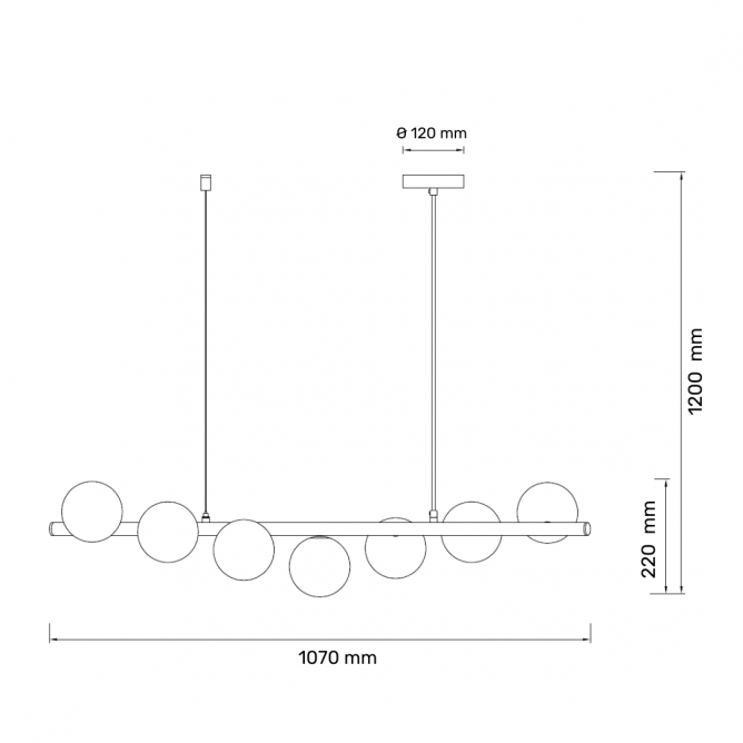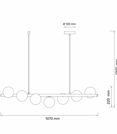 Dimenzije 1070 x 220 x 1200 mm (kugla Ø120 mm)
