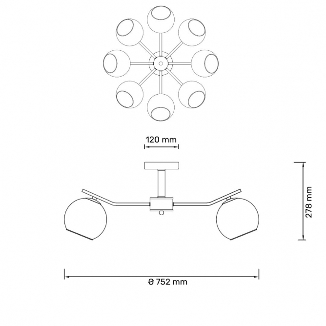 TALIA 32, luster sa 8 E14 sijalicama u crnoj i bakarnoj boji, pruža dovoljno svetlosti za prostrane dnevne sobe i komercijalne prostore, istovremeno dodajući luksuzan izgled svakom enterijeru.