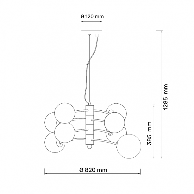 Luster u crnoj i bakarnoj kombinaciji, sa 8 kugli u amber boji, odličan je izbor za prostrane prostorije, kao što su dnevne sobe i trpezarije, donoseći elegantnu i efektivnu rasvetu.