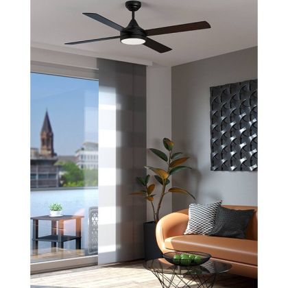 Plafonski ventilator Timparello ima moderan dizajn zbog svog tradicionalnog izgleda. Ovaj plafonski ventilator sa osvetljenjem je napravljen od crnog metala sa četiri MDF crne lopatice. Timparello stoga ne samo da će obezbediti neophodno hlađenje, već će i stvoriti funkcionalno svetlo kada to želite. Postoji integrisani LED modul skriven iza bele opalne nijanse od 20 vati (2.200 lumena). Pomoću priloženog daljinskog upravljača možete podesiti tri brzine (52 dB(A), tajmer i stepenasti prigušivač za osvetljenje. Boja svetla se menja od 3.000/4.000/5.000 kelvina kako je podesite. Ovo vam omogućava da sami odredite intenzitet svetlosti i boju svetlosti tokom upotrebe. Timparello ima prečnik od 122 cm i visok je oko 122 cm do 8 cm visine okruglog zgloba. u sredini, možete postaviti Timparello na kosi plafon do ugla od 13°. Takođe ima letnje-zimski položaj, tako da možete koristiti Timparello tokom cele godine.