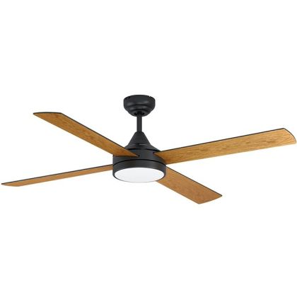 plafonski ventilator Timparello, ventilator sa 4 lopatice sa osvetljenjem, mat crni, reverzibilne lopatice od medijapana u crnoj ili hrastovini, daljinski upravljač, toplo bela hladno bela, sa mogućnošću zatamnjivanja, AC motor, Ø 122cm