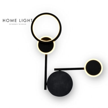 - Zidna LED lampa crne boje, interesantnog dizajna sa dva rasvetna kraka kružnog oblika. Emituje toplo belu nijansu svetla, snage 16w. Pored uloge rasvetnog tela, ova zidna lampa će predstavljati i interesantan detalj u svakom enterijeru. Upotrebljiva i za stambene i za poslovne korisnike.