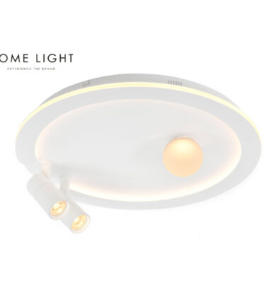 LED plafonska svetiljka izrađena od aluminijuma u beloj boji sa ukupno tri reflektora – dva uža spota i jedan širi. Emituje svetlost toplo bele boje koje isijava iz spot reflektora, a i oko same baze svetiljke – u smeru plafona. Višenamenska upotreba koja je primenjiva i u stambenim i u komercijalnim objektima.
