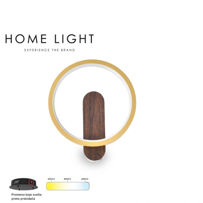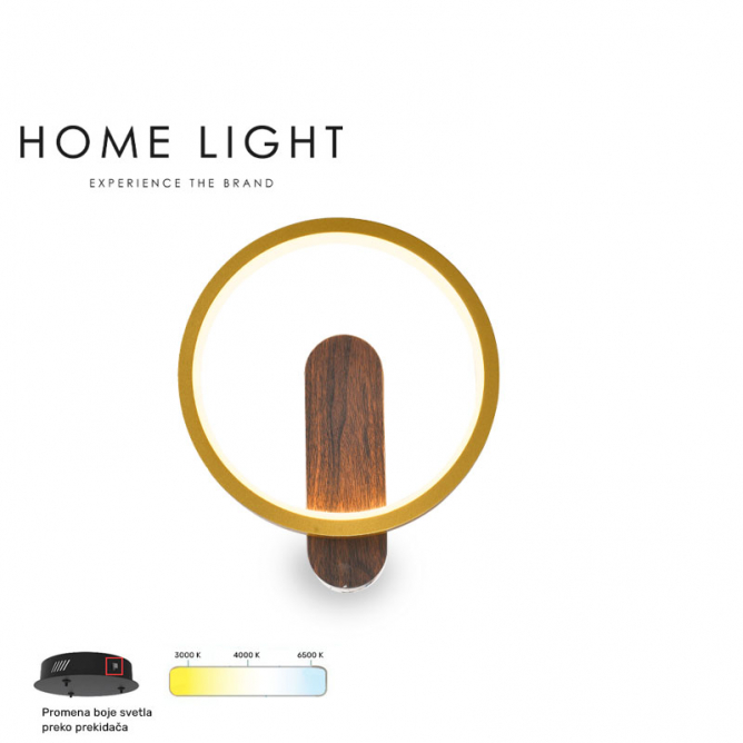 Vesta 531 zidna LED svetiljka u kombinaciji boja tamnog drveta i zlatne, snage 12W. Zahvaljujući kružnom obliku, bojama, originalnom i modernom dizajnu, može se uklopiti uz različite enterijere. Svetlost emituje iz kružnog dela. Pogodna je za stanove, poslovne prostore, ugostiteljske objekte, sa ciljem da na najlepši mogući način istakne zid na kome je ugrađena. Ovo ambijetalno osvetljenje, učiniće svaki prostor lepšim i prijatnim za boravak.