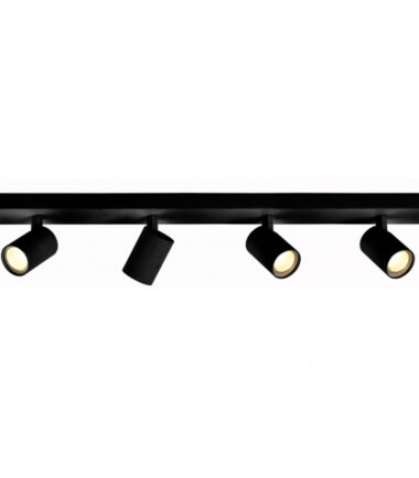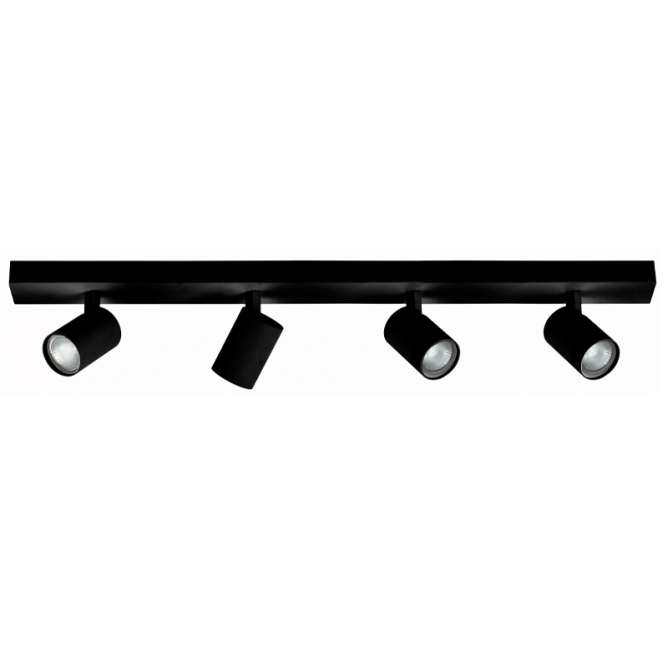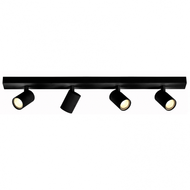 Plafonska spot svetiljka u crnoj boji sa 4 reflektora u kojima su sijalična grla tip GU10. Lampe se mogu okretati u svim smerovima i na taj način se može prilagođavati smer svetlosti prema potrebama (podesiv ugao nagiba: 90°; podesiv ugao rotacije: 330°).