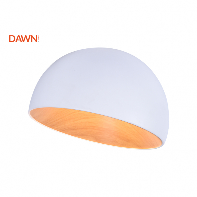 Led plafonjera kružnog polusferičnog oblika bele spoljašnosti i unutrašnjosti u boji drveta. Svetlost snage 24W, 3000K, se širi bez oštrih senki ili blještavila, stvarajući prijatnu atmosferu. Njena jednostavnost oblika omogućava joj da se uklopi u različite stilove uređenja enterijera, od modernog do klasičnog.