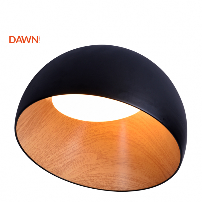 Led plafonjera kružnog polusferičnog oblika crne spoljašnosti i unutrašnjosti u boji drveta. Svetlost snage 36W, 3000K, se širi bez oštrih senki ili blještavila, stvarajući prijatnu atmosferu. Njena jednostavnost oblika omogućava joj da se uklopi u različite stilove uređenja enterijera, od modernog do klasičnog.