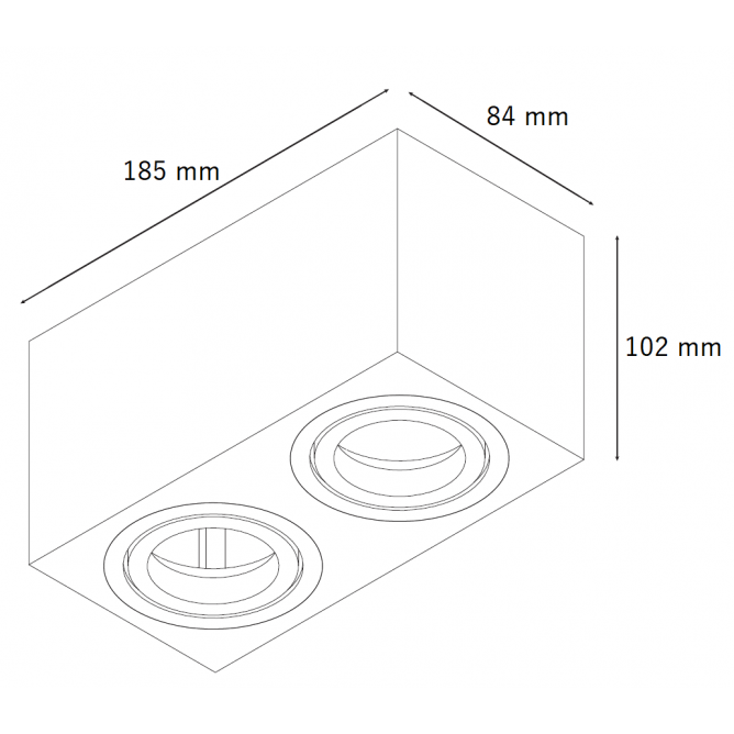 Plafonska spot lampa sa dva sijalična mesta za sijalicu tip GU10, sa mogućnošću rotiranja i podešavanja ugla osvetljenja i svetlosnog snopa u željenom pravcu.