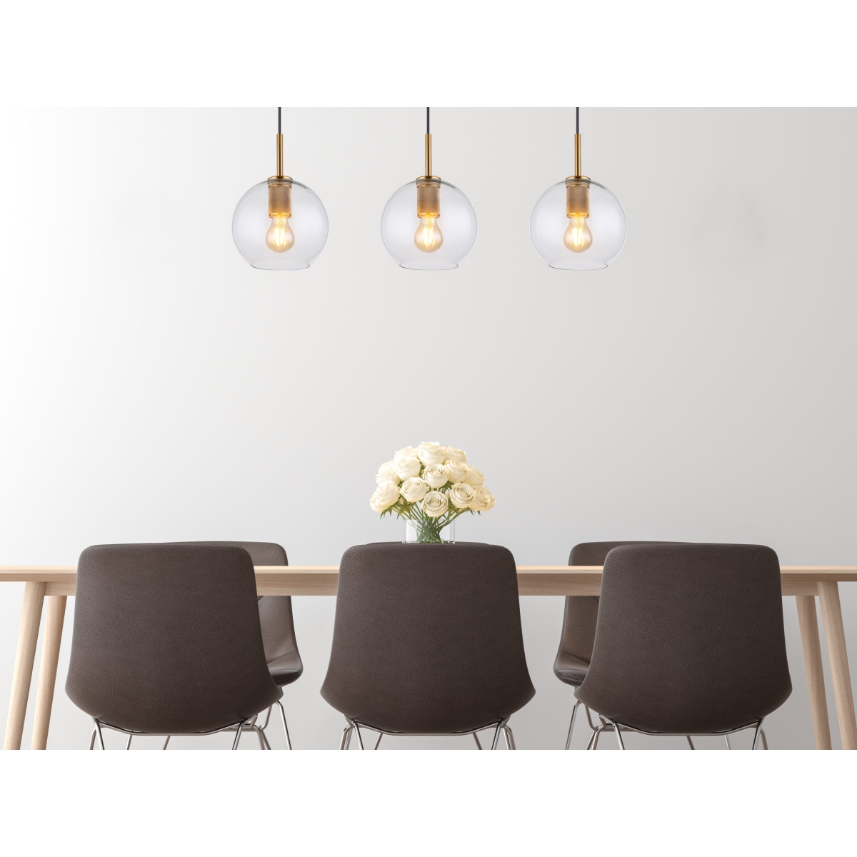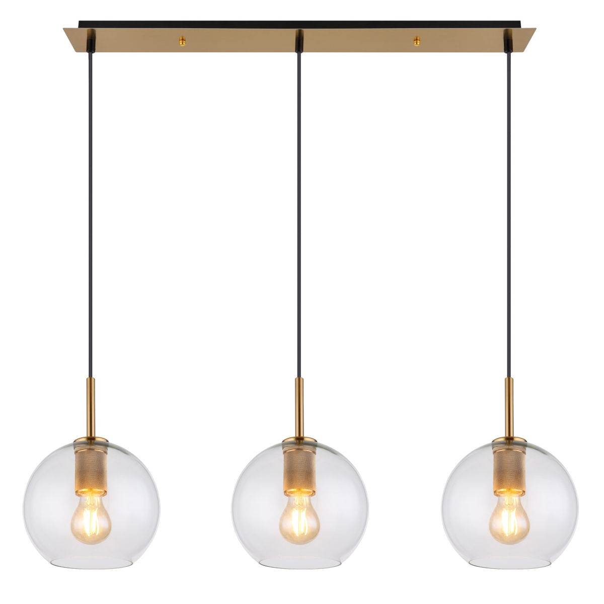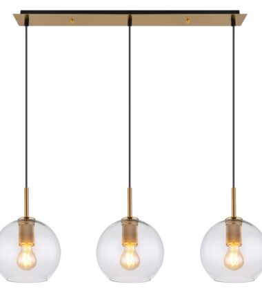 Viseća lampa serije ADARA napravljena od metala mesingane boje može se divno montirati zbog svog izduženog oblika, npr. preko trpezarijskog stola, koji potom doživljava jednoobrazno osvetljenje. Visilica dužine 90 cm može biti opremljena sa tri E27 sijalice po vašem izboru, koje su potom okružene sfernim, providnim staklom. Ovo vam omogućava da odredite boju svetla i jačinu pojedinačno. Pored toga, staklene kugle se mogu podesiti na maksimalnu visinu od 1,2 m pomoću užeta. Uz dodatne artikle serije Adara možete upotpuniti celokupnu sliku u zatvorenom prostoru.