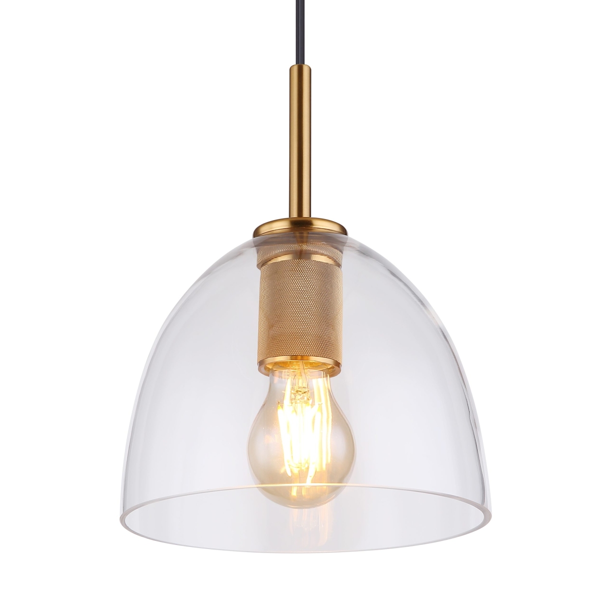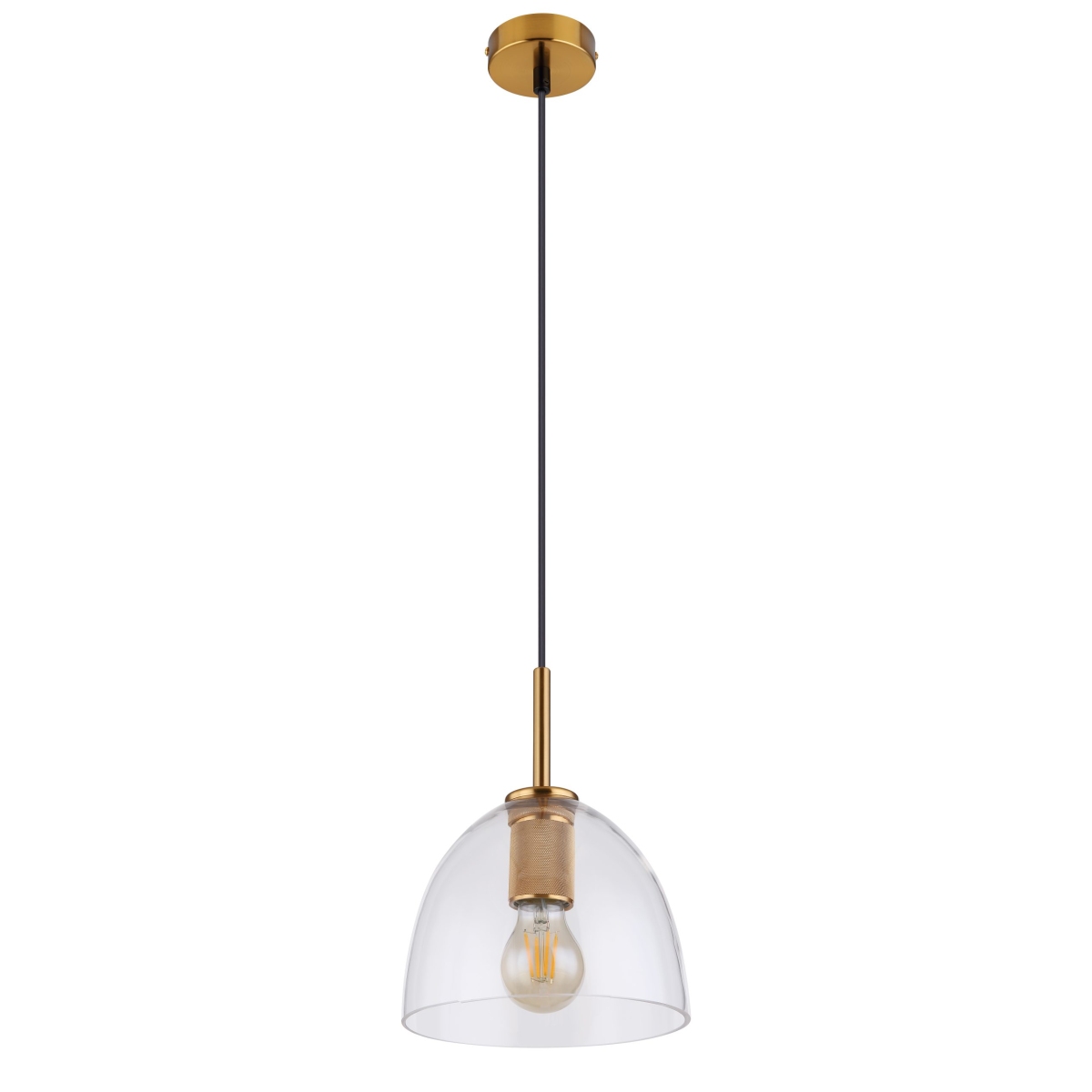 Ova visilica serije ADARA ističe se svojim prelepim dizajnom napravljenim od mesinganog metala i providnim staklom. Stakleni abažur u obliku kupole (ø 20 cm) visi 1,2 m od plafona i može biti opremljen E27 sijalicom po vašem izboru. To vam daje mogućnost da odredite boju svetla i jačinu u skladu sa vašim preferencijama. Uz nekoliko artikala serije Adara, možete upotpuniti celokupnu sliku vašeg enterijera.