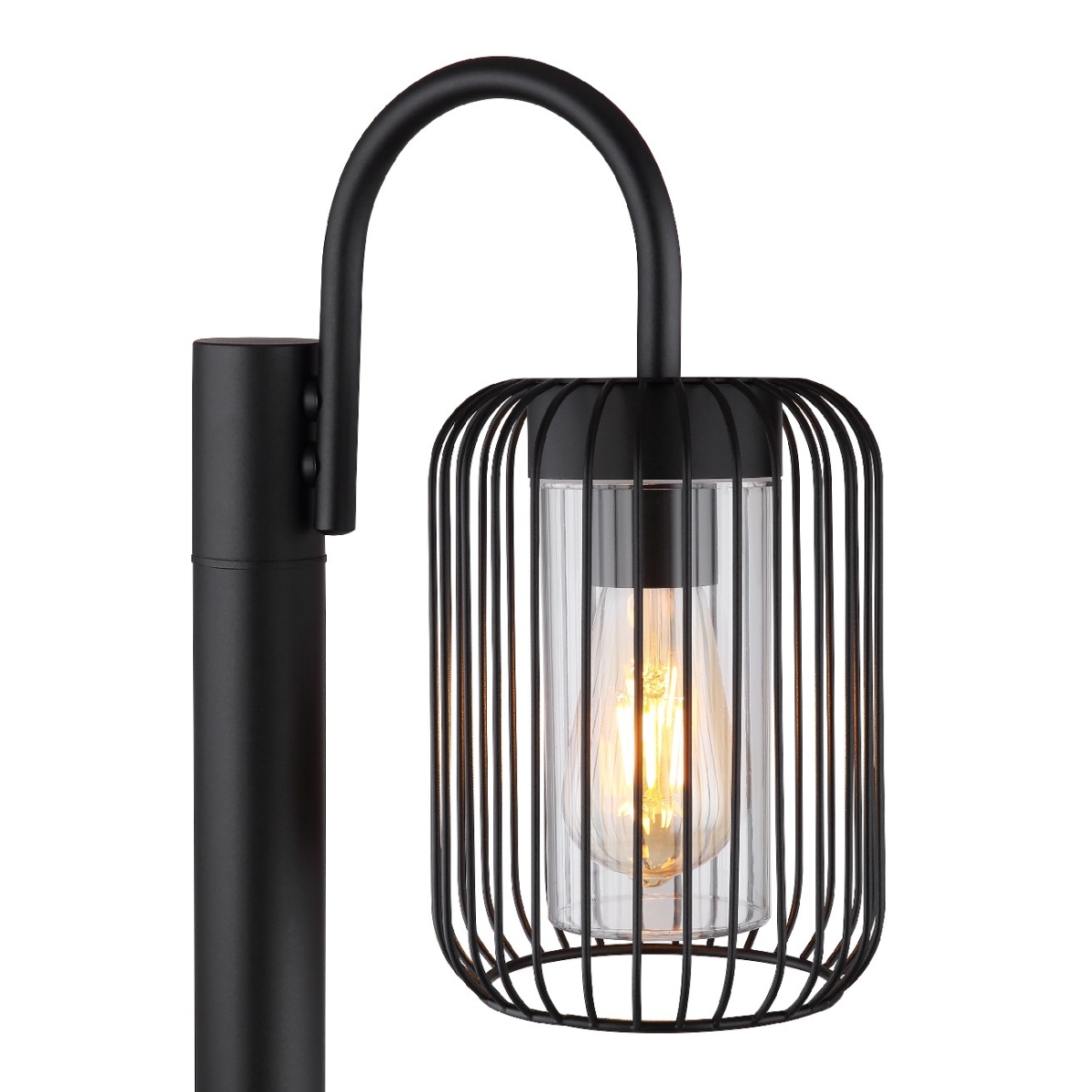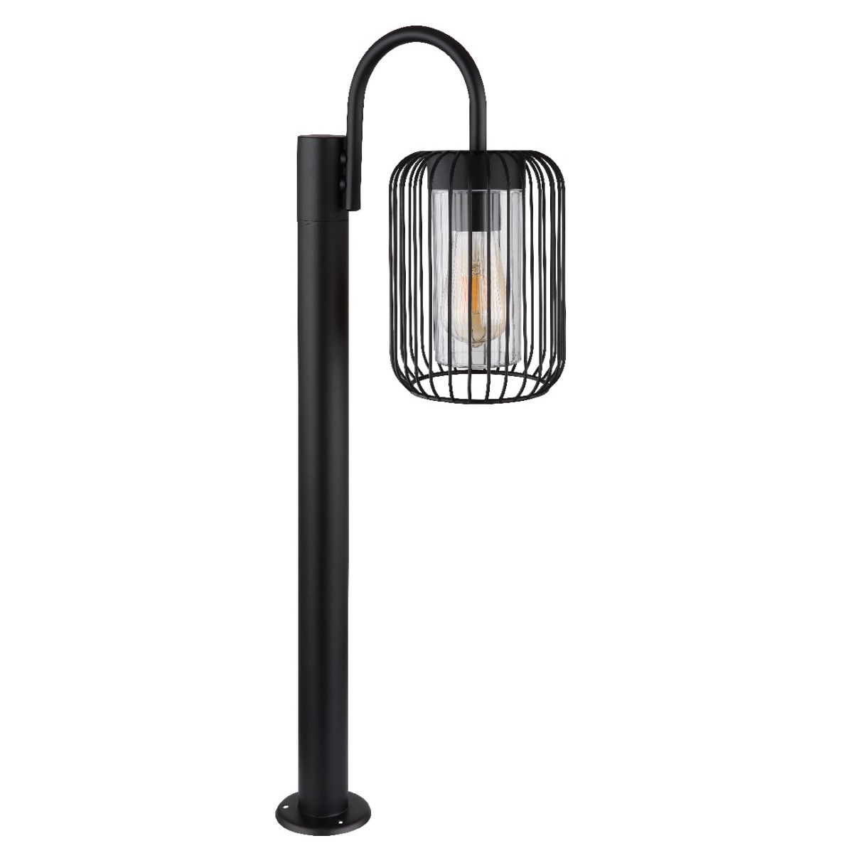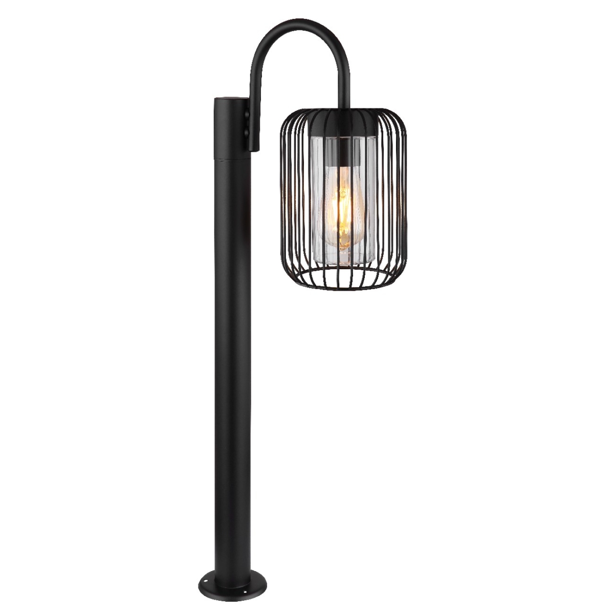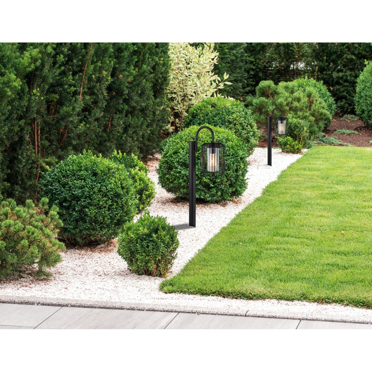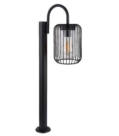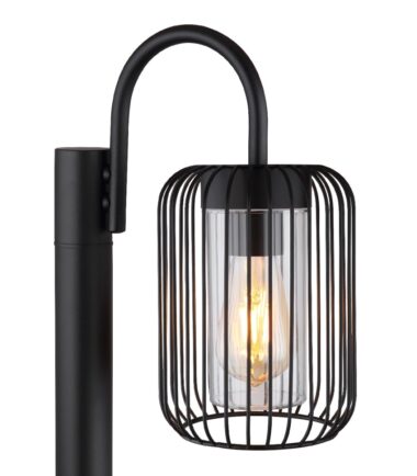 Ova plemenita spoljašnja lampa impresionira svojim kontinuiranim crnim mat dizajnom napravljenim od nerđajućeg čelika. Cilindrično kućište sa montiranom zakrivljenom metalnom šipkom prodire iz okrugle baze. Ona se završava na E27 grlu sa oblikovanim abažurom napravljenim od metalnih šipki (Ø16 cm). Grlo E27 vam omogućava da sami odredite boju svetla i jačinu do maksimalne snage od 15 vati. Zbog dugovečnosti i uštede energije preporučujemo LED sijalice.