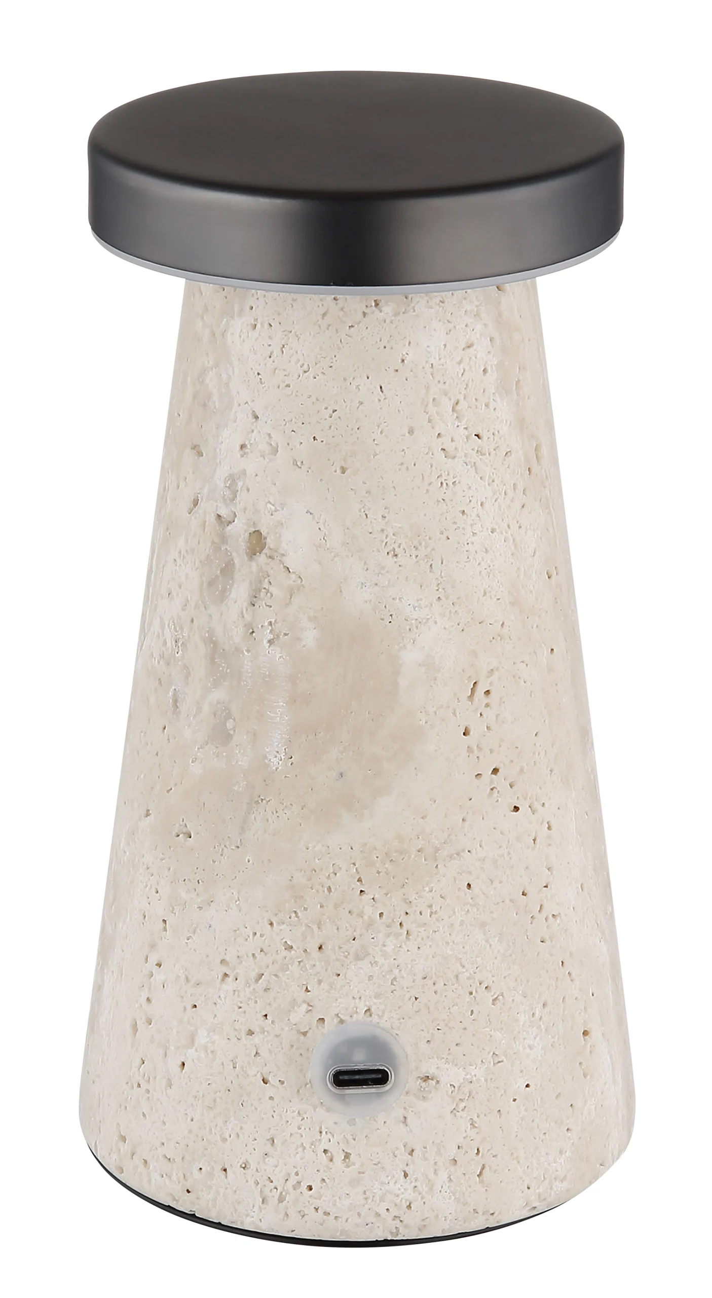 Stona lampa Travertine Stone Gray kombinuje elegantan dizajn sa praktičnom funkcionalnošću. Telo od sivog travertina i crno-hromirani metalni abažur dodaju stilske akcente svakoj prostoriji. Opalni plastični abažur pruža meko, prijatno svetlo. Pomoću bezstepenog dodirnog dimera, osvetljenost se može individualno podešavati, dok se boje mogu fiksirati, a funkcija memorije čuva vaše željeno podešavanje. Svetlo nudi svetlosni izlaz od 138 lumena i CCT funkciju od 2700K do 4500K, tako da uvek možete stvoriti savršeno svetlosno raspoloženje. Takođe svetli tokom punjenja i potrebno je približno 4 sata da se potpuno napuni. Vreme osvetljenja je približno 6 sati. Uključujući USB kabl za punjenje i adapter, odmah je spremna za upotrebu. Dodirna kontrola uključivanja/isključivanja obezbeđuje praktično rukovanje. Ova stona lampa nije samo privlačna za pogled, već i praktično i moderno rešenje za osvetljenje.