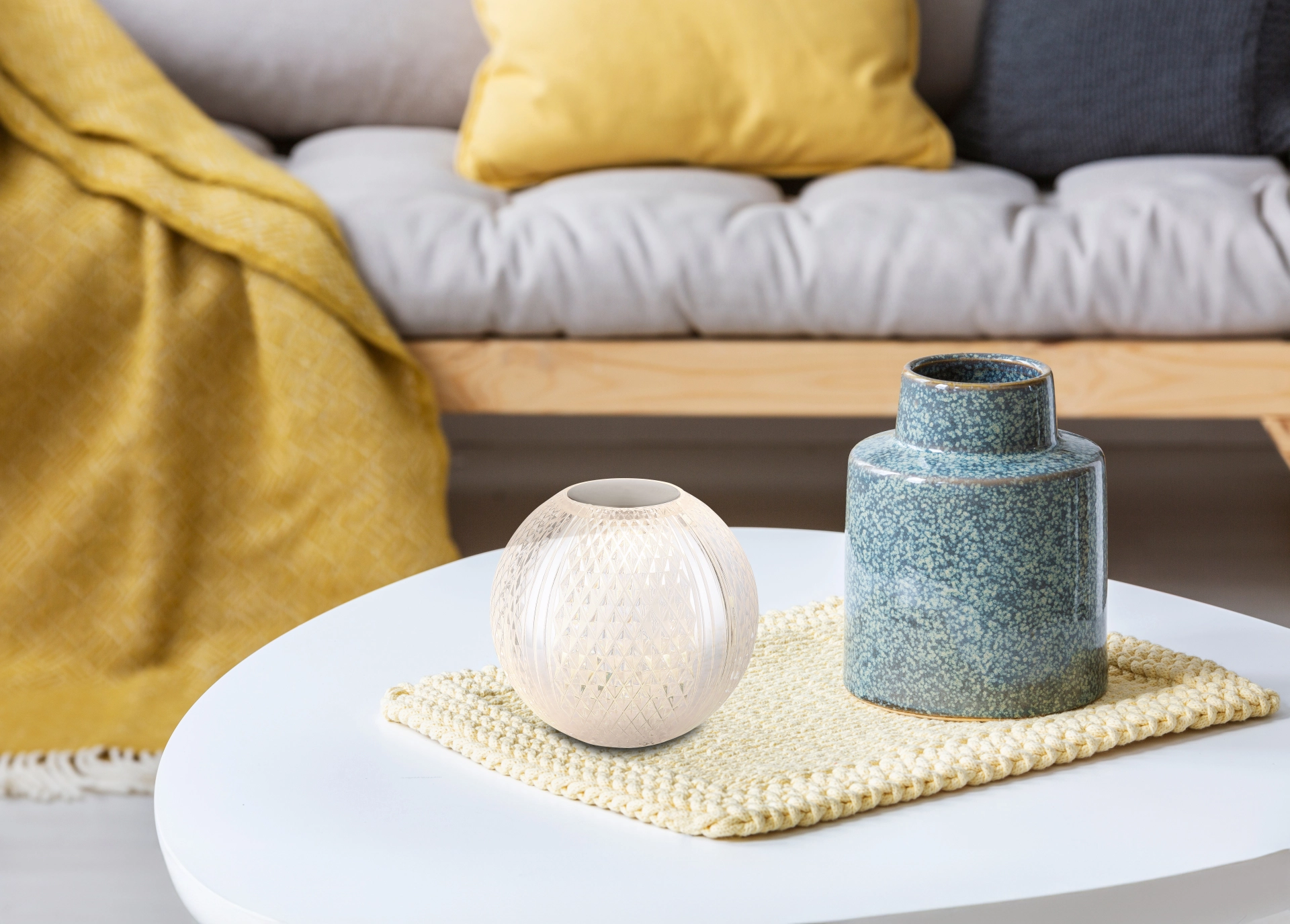 Moderna elegancija: AIDA stona lampa je stilsko rešenje za vaše osvetljenje. Teksturirana akrilna kugla i sferni oblik stvaraju jedinstven dizajn koji je savršen za moderne prostore. Stona lampa ima telo napravljeno od akrilne providne plastike sa nikl mat lakom. Sa LED osvetljenjem, osvetljenje se može prigušiti po želji, što je posebno praktično zahvaljujući bezstepenom dodirnom dimeru. Boja osvetljenja se takođe može fiksirati. Funkcija memorije vam omogućava da sačuvate poslednje podešavanje. Dodirna funkcija za uključivanje/isključivanje omogućava lako i brzo uključivanje/isključivanje osvetljenja. Sa izlazom od 120 lumena i vremenom punjenja od oko 2 sata, AIDA nudi dugotrajno i efikasno osvetljenje.