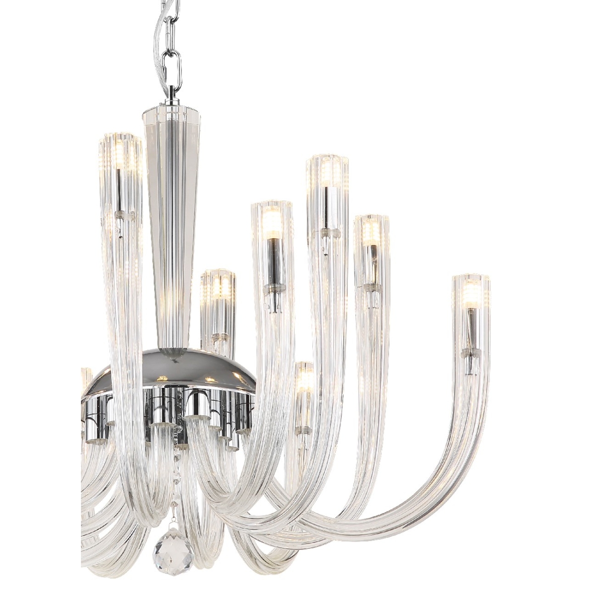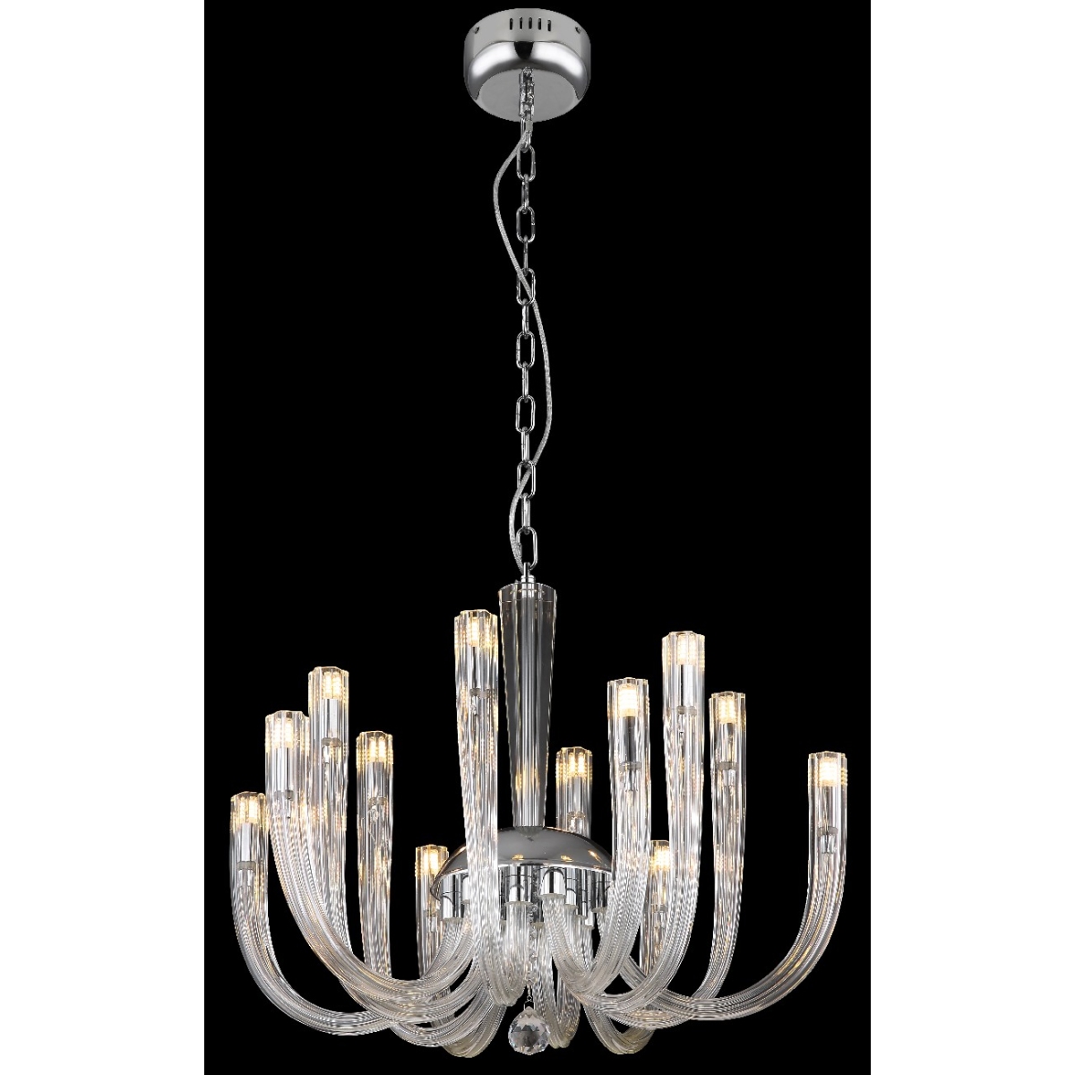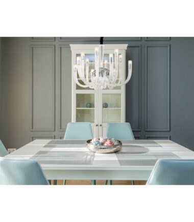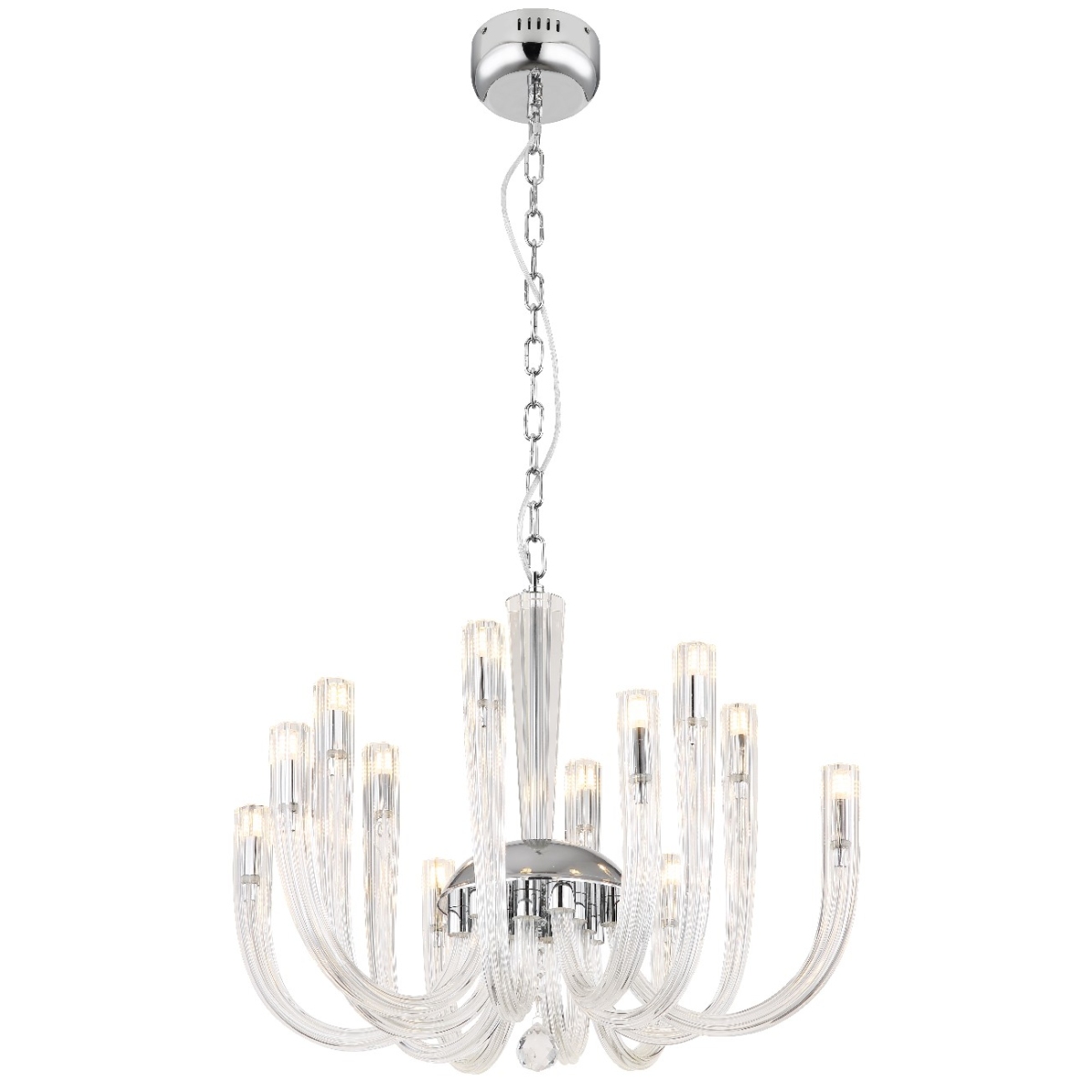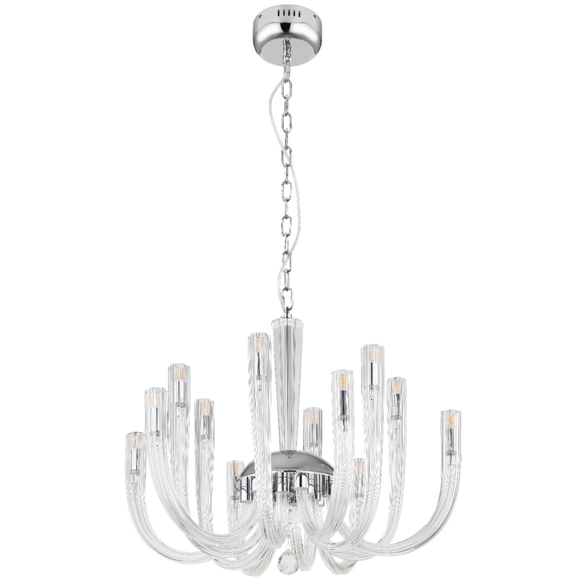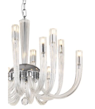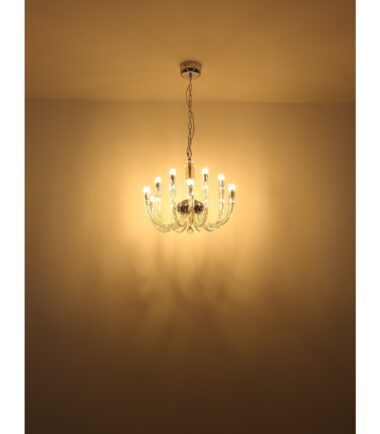 Visilica je napravljena od hromiranog metala i providnih staklenih šipki koje lepo reflektuju svetlost. Lanac je obložen somotom i ima dužinu od 1170 mm. Prečnik lampe je 620 mm. Sijalice nisu uklučene u obim isporuke. Potrebno vam je 12 sijalica G9, svaka snage 7w i napona od 230 volti. Pravi je detalj koji će privlačiti pažnju u svakoj prostoriji. Providne staklene šipke stvaraju prijatnu atmosferu, a hromirani metal daje lampi moderan izgled. Sa dužinom od 1170 mm, lanac je dovoljno dugačak za ugradnju lampe čak i u visoke prostorije. Prečnik od 620 mm čini lampu privlačnom.