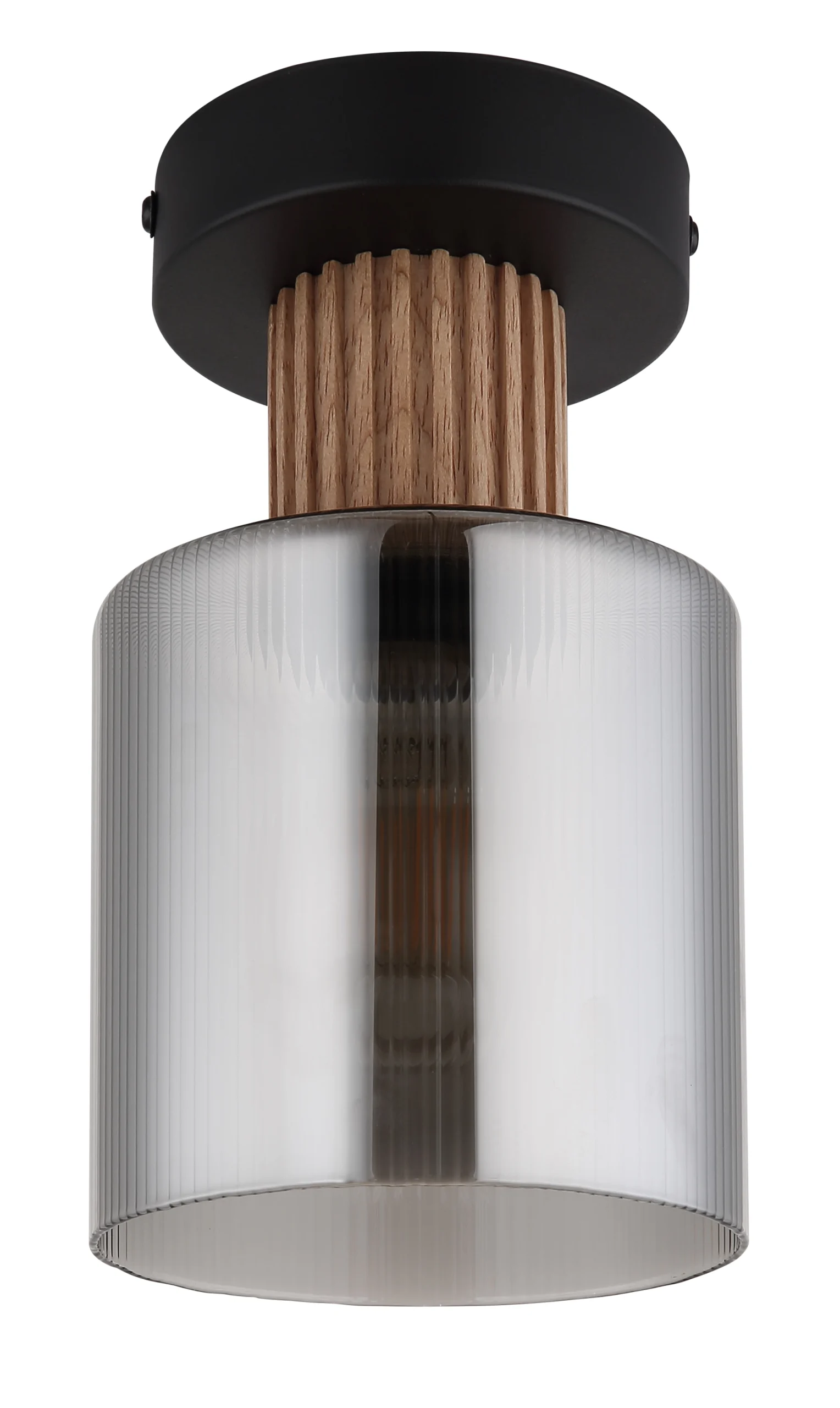 Plafonska lampa ALEIDIS okruglog dizajna kombinuje elegantno staklo sa drvenim aplikacijama. Crno mat metalno kućište i dimljeno staklo kombinuju se sa drvenim detaljima kako bi stvorili toplu i privlačnu atmosferu. Pogodna za sijalicu E27 (ekskluzivno).