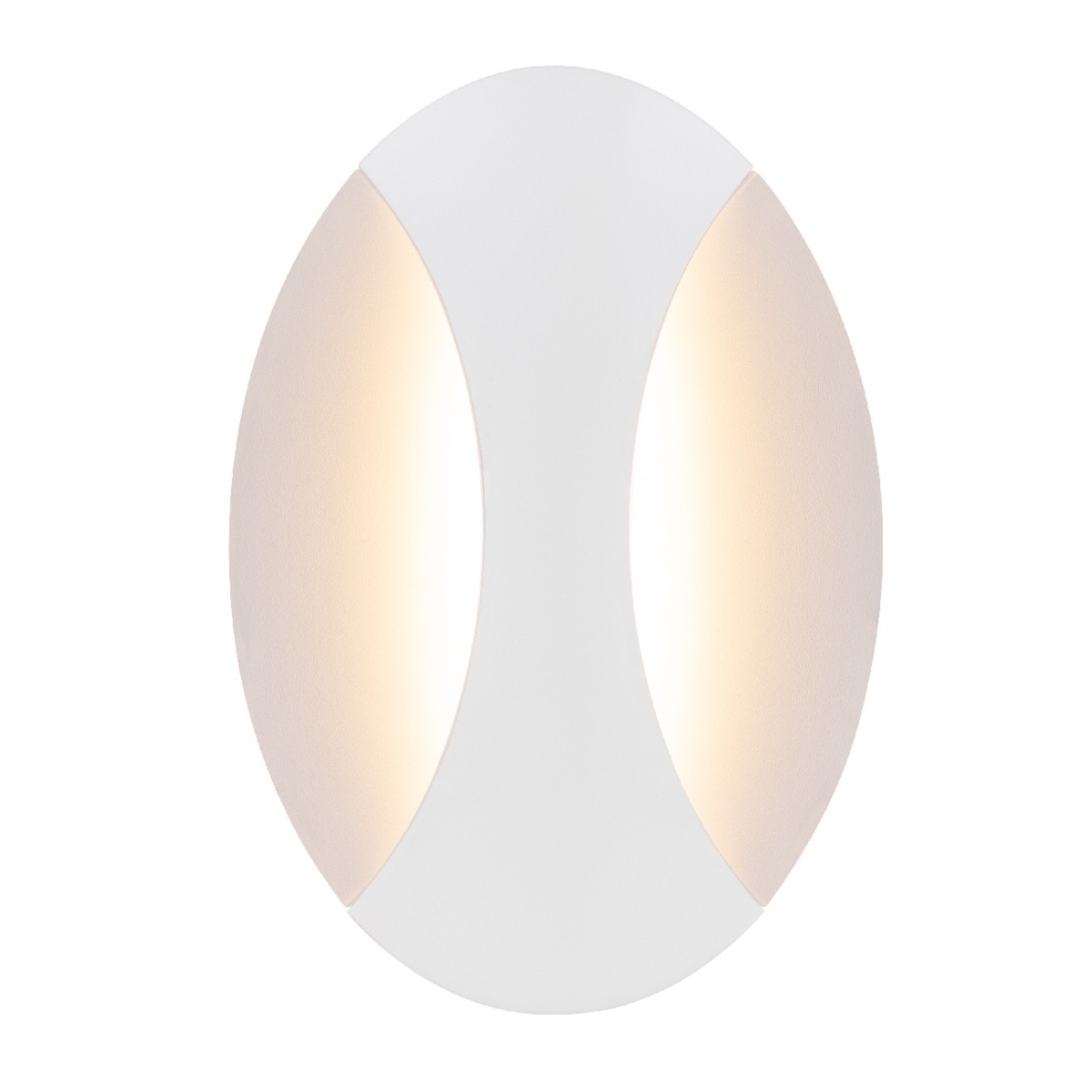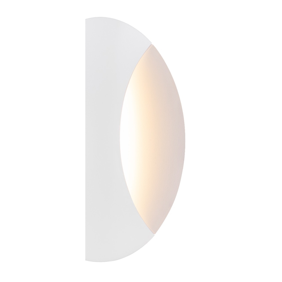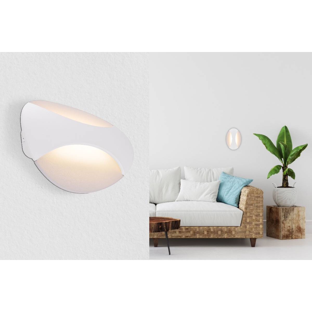 Ovalna zidna lampa ALEXANDRA napravljena od belog metala impresionira svojim oblinama. Uključena LED sijalica od 6 vati obezbeđuje 230 lumena svetlosti prijatno tople svetlosne boje od 3000 Kelvina.