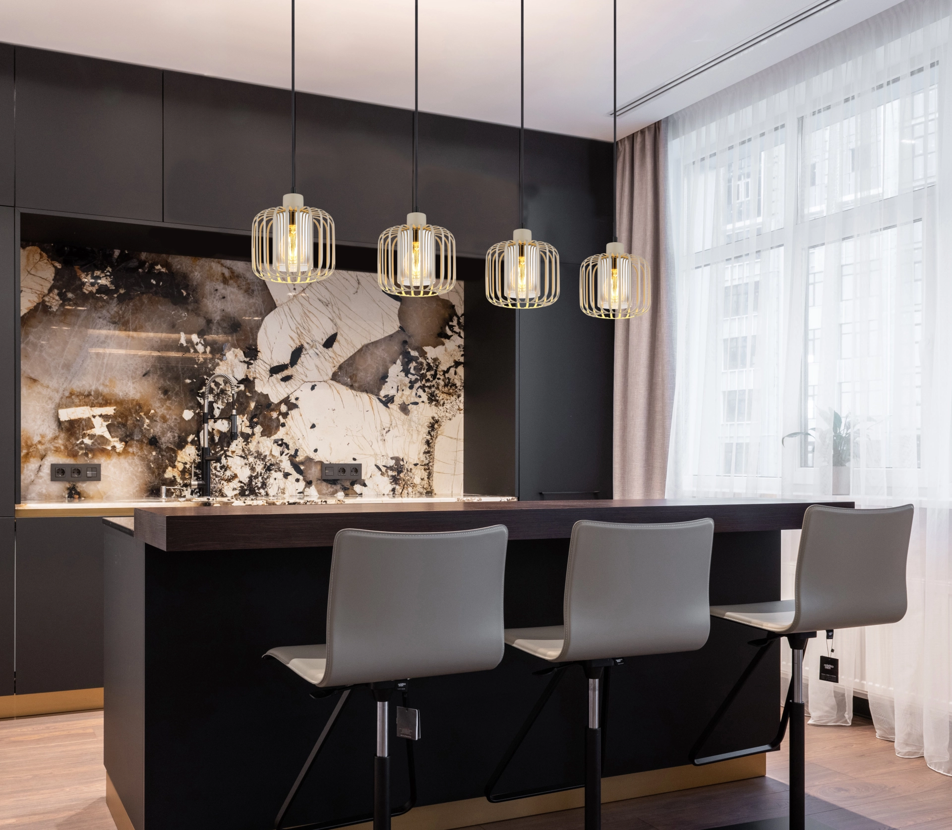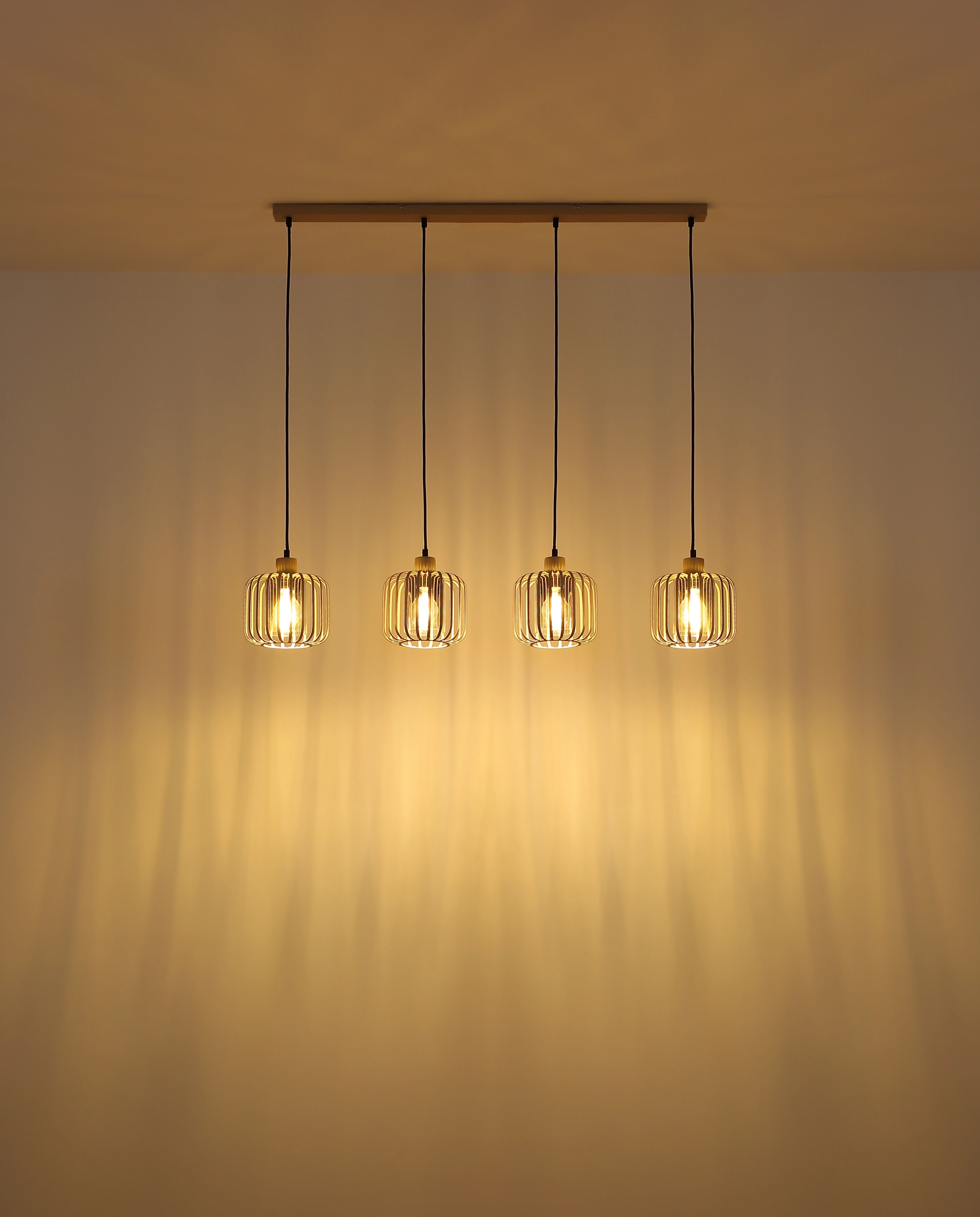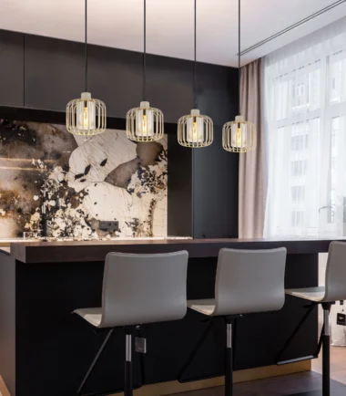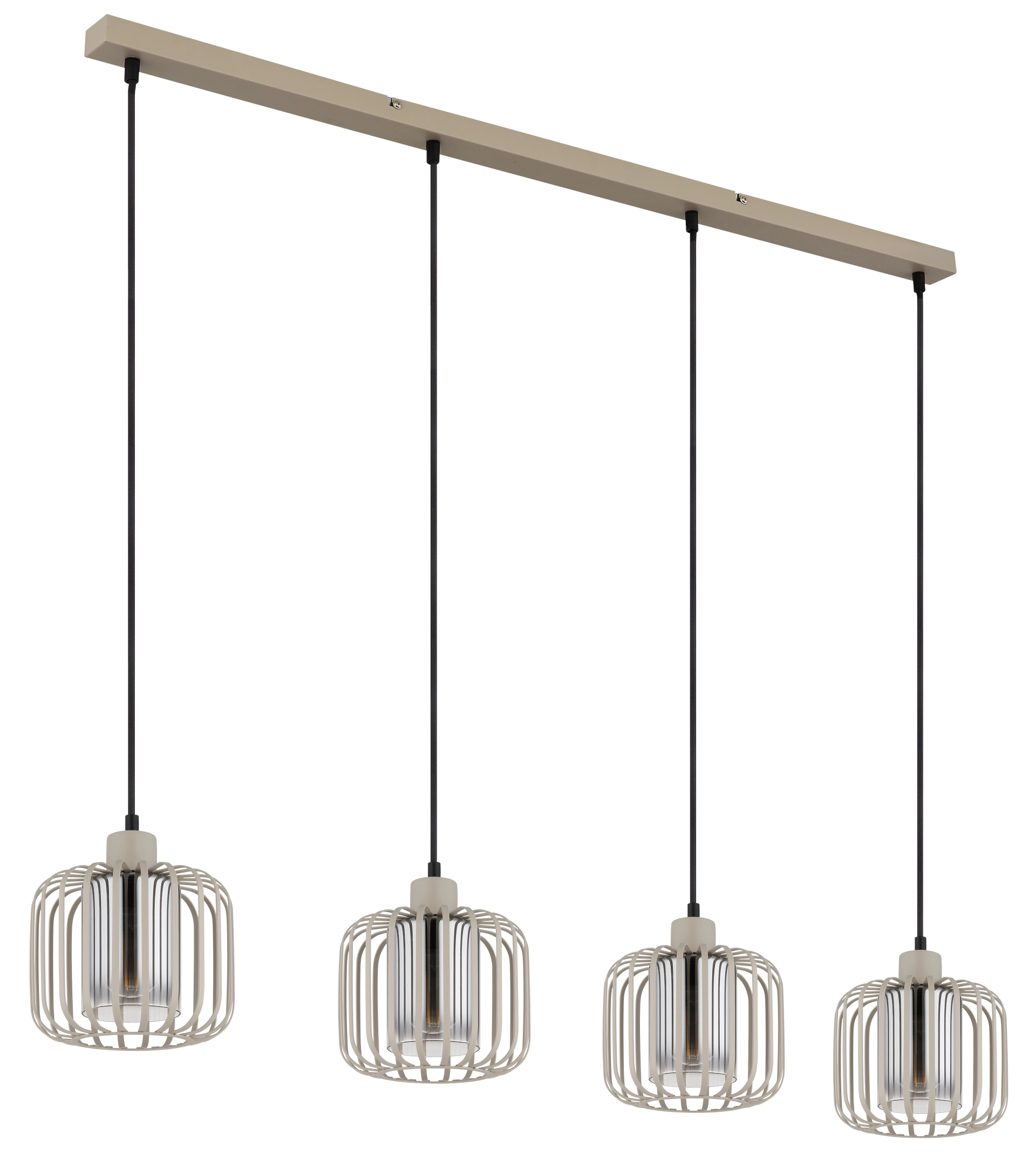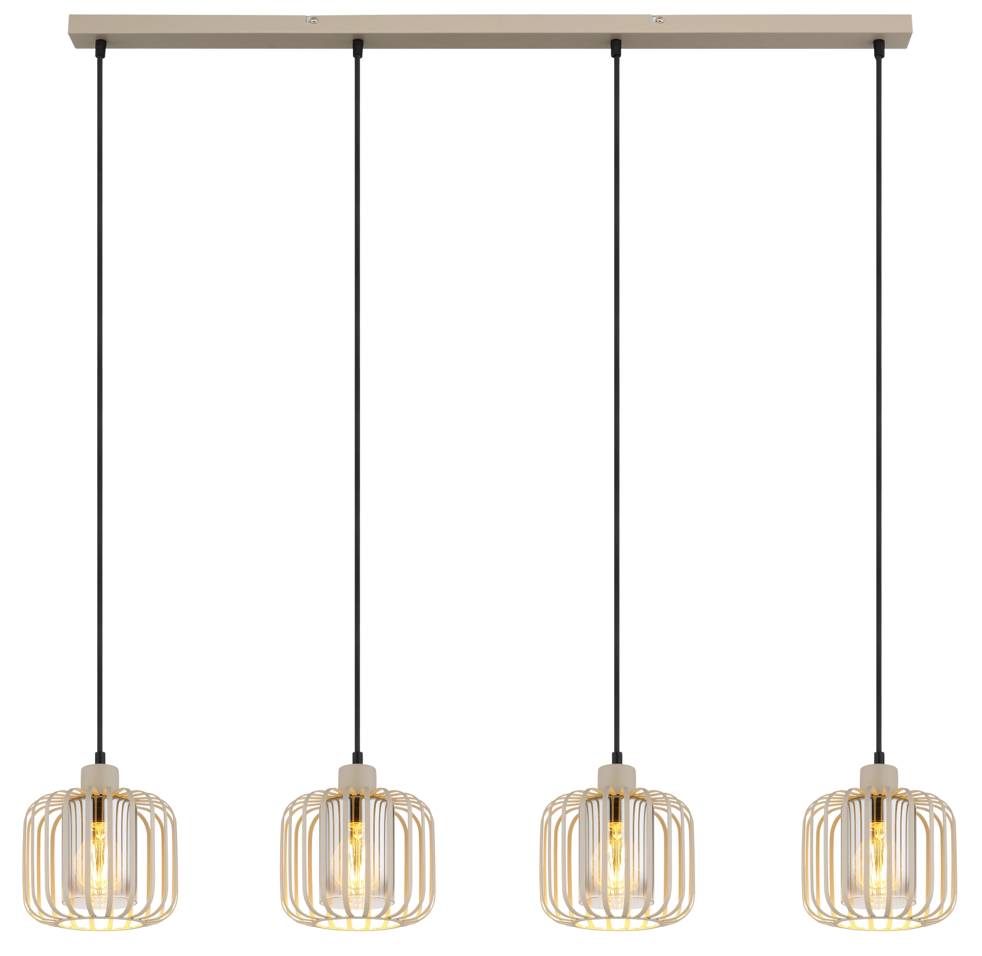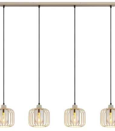 Viseća lampa ALFRED daje vašoj sobi moderan, ali bezvremenski izgled. Sa svojim ravnim, izduženim dizajnom i četiri metalna abažura sa loptastom mrežom, ona je pravi vrhunac. Telo napravljeno od mat metala boje peska upotpunjeno je metalnim šipkama u istoj boji, koje, u kombinaciji sa cilindrom od dimljenog stakla unutar abažura, stvaraju elegantno, toplo svetlo. Abažur je providan, što obezbeđuje prijatno i ravnomerno osvetljenje. Sa dužinom od 1080 mm i širinom od 180 mm, ova viseća lampa je idealna za izdužene stolove ili kuhinjska ostrva. Isporučuje se bez sijalice, tako da možete opremiti E27 grlo prema vašim individualnim željama. ALFRED nije samo funkcionalan, već postavlja i stilske akcente u vašem životnom prostoru.