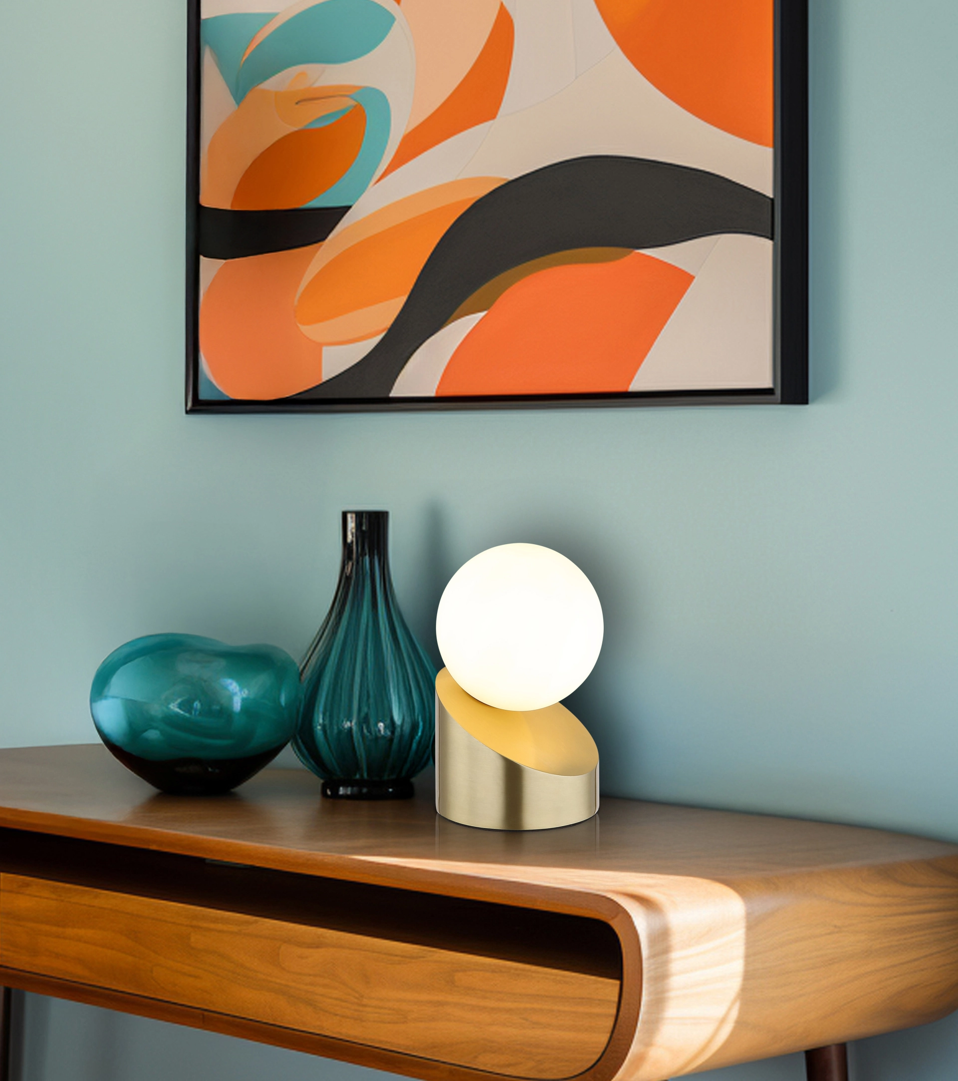 Stona lampa ALISA impresionira svojim minimalističkim dizajnom i prefinjenim detaljima. Njena okrugla, blago uglovana osnova od mat metala u tonu mesinga dodaje dašak elegancije i retro šarma svakom prostoru. Opalna staklena kugla graciozno se uklapa sa metalnim kućištem i emituje meku svetlost bez odsjaja. Sa kompaktnim prečnikom od samo 100 mm, ALISA se lako uklapa na uske konzole, noćne stočiće ili prozorske daske. Integrisana G9 LED sijalica (uključena) pruža 275 lumena u toploj svetlosti od 3000 K – savršeno za suptilno ambijentalno osvetljenje. Posebno je praktična: lampa ima modernu funkciju uključivanja/isključivanja na dodir bez vidljivog prekidača. Bilo da je u spavaćoj sobi, dnevnoj sobi ili kancelariji, ALISA je stilski komad osvetljenja pun karaktera koji upotpunjuje i moderne i klasične enterijere.