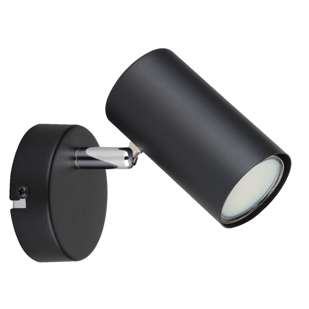 Ovaj jednostavan zidni reflektor ubeđuje sjajnim dizajnom. Grlo GU10 sa prepustom od 15cm prodire iz okruglog zidnog nosača. Crna mat zidna lampa opremljena je rotirajućim hromiranim zglobom i ostavlja vam maksimalnu snagu od 25 vati da sami odredite boju svetla i jačinu. Zbog dugovečnosti i uštede energije preporučujemo LED sijalice.