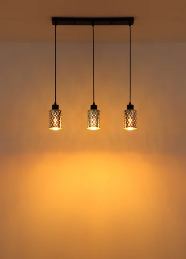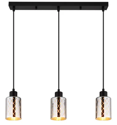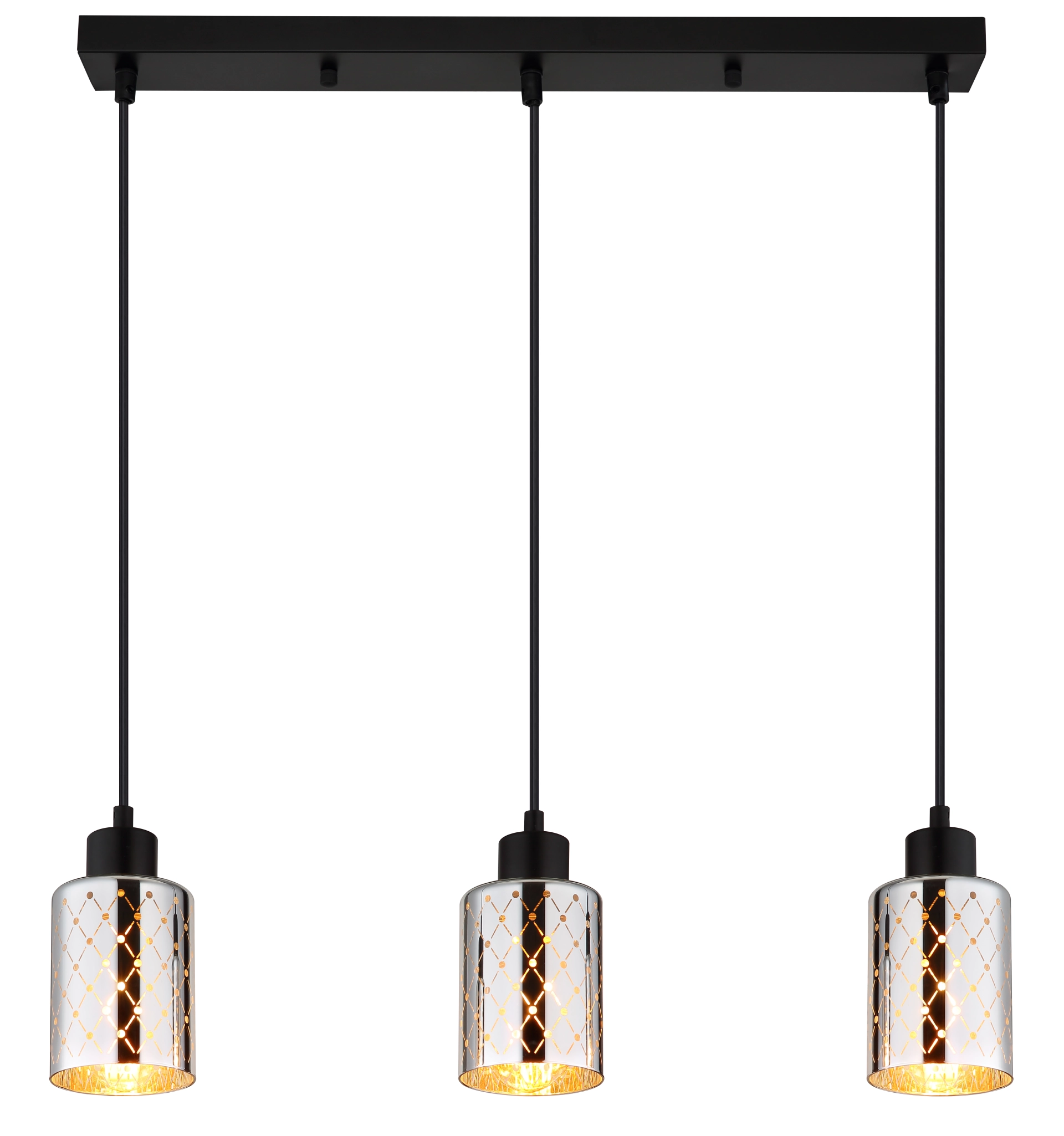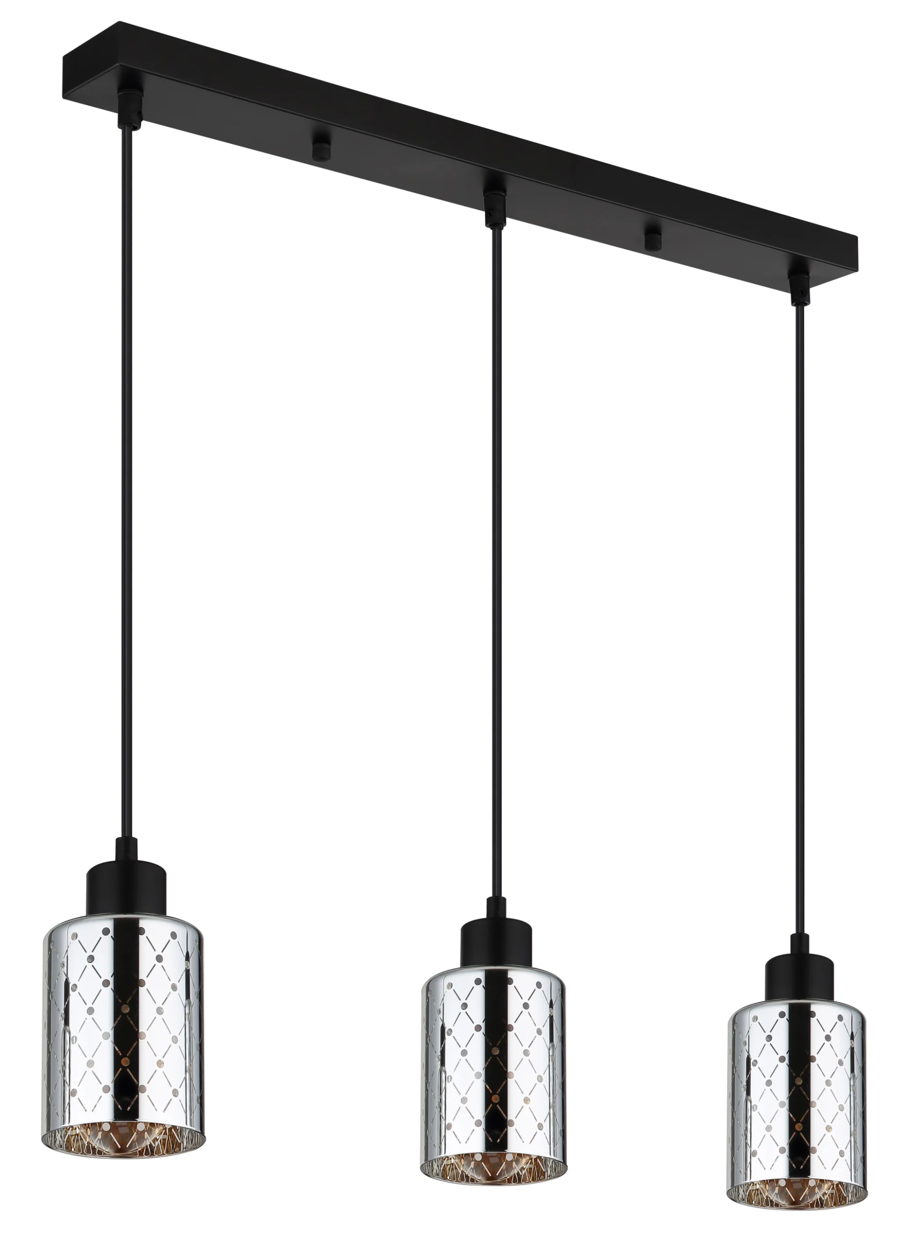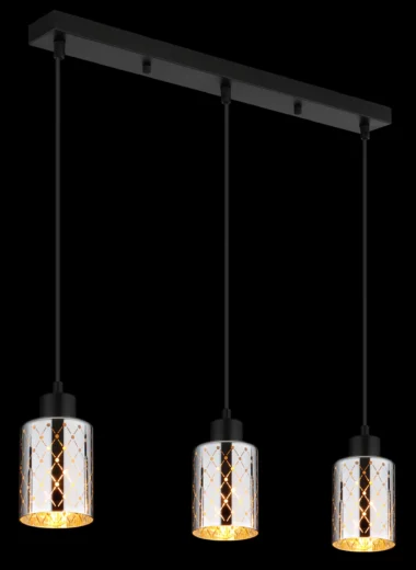 Viseća lampa ALONSO kombinuje moderan dizajn sa fascinantnim akcentima osvetljenja. Tri cilindrična abažura od providnog, hromiranog stakla sa nežnim dekorativnim perforacijama obezbeđuju atmosfersku igru svetlosti i postavljaju stilske akcente u prostoriji. Izduženo telo od mat crnog metala daje lampi elegantan, savremen izgled i savršeno se usklađuje sa širokim spektrom stilova nameštaja – od modernog do industrijskog. Sa dužinom od 580 mm i širinom od 90 mm, lampa je idealna za osvetljavanje trpezarijskih stolova, pultova ili dnevnih boravka. Zahvaljujući E27 grlu (bez sijalica), boja i intenzitet svetlosti mogu se individualno odabrati. Bilo da je to toplo svetlo za prijatne večeri ili jarko svetlo za jasan pogled – ALONSO se prilagođava vašim potrebama. Funkcionalan, kao i dekorativni akcenat koji stilski kombinuje dizajn i atmosferu.