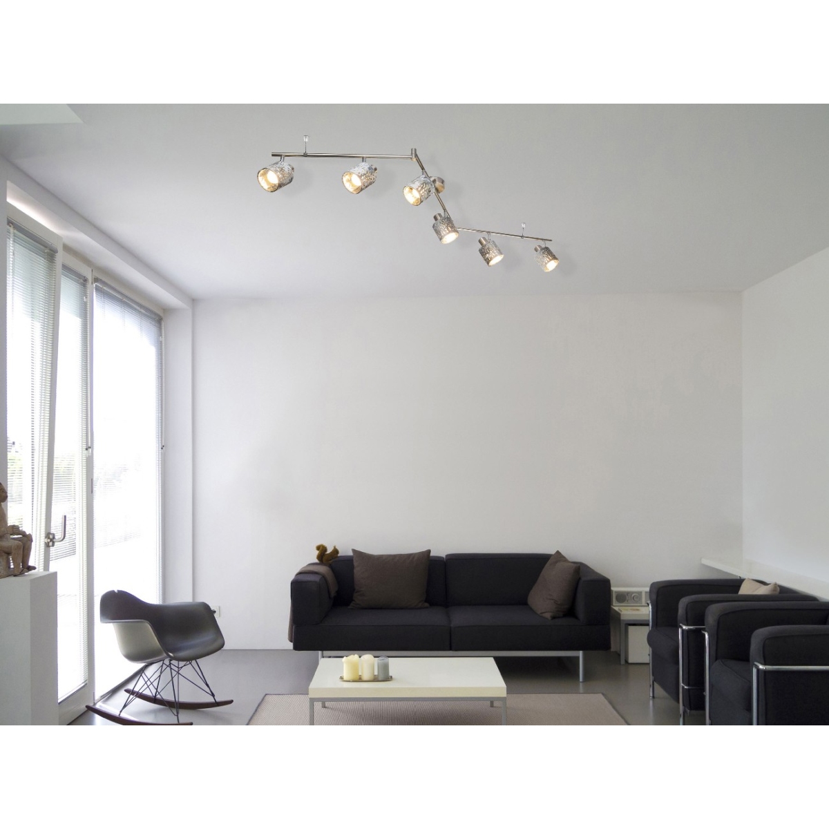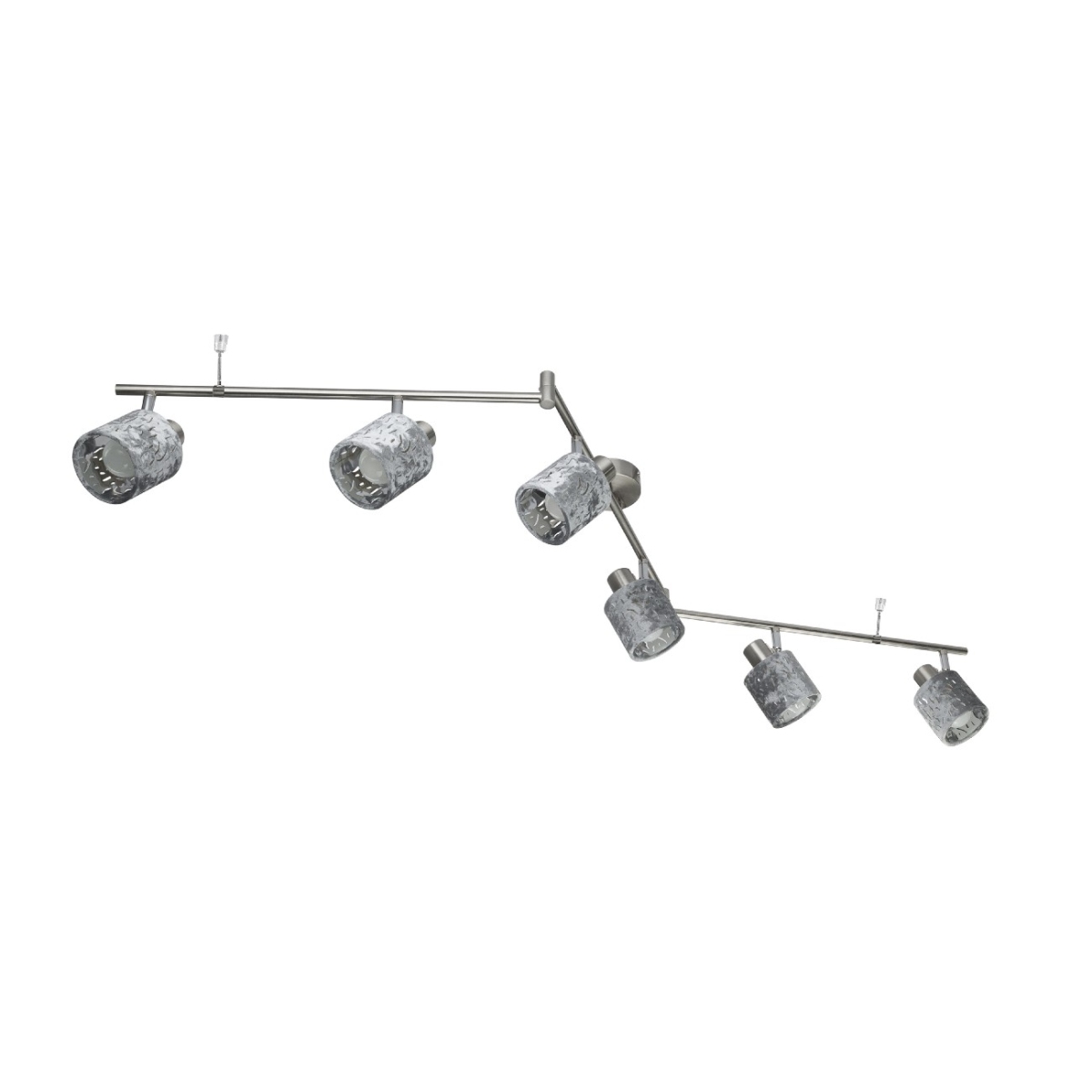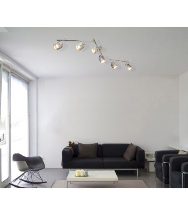 Elegantan spot serija ALYS jasno daje rezultate svojom kombinacijom materijala. Šest pokretnih grla pričvršćenih za tri ravne grane sa cilindričnim abažurima prekriveno je srebrno obojenim somotom, koji se divno uklapa sa srebrom unutar abažura i na taj način pružaju prelepo svetlo. Nikl-mat metalni držač kao i pojedinačni hromirani delovi upotpunjuju sliku i čine da ovaj spot bude primećen. Grlo E14 vam omogućava da sami odredite osvetljenje i samim tim svetli intenzitet i laganu boju (max. 8W). Sa ostalim modelima ove serije možete upotpuniti sliku u vašim prostorijama.