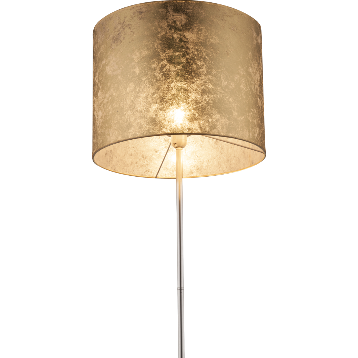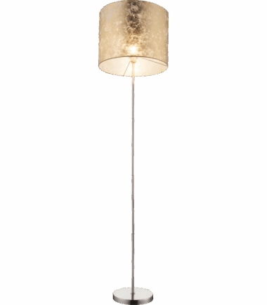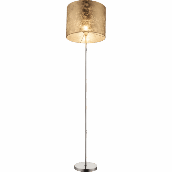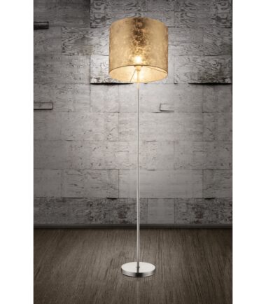 Ova podna lampa definiše jednostavnu konstrukciju. Nikl-mat komponente se savršeno usklđuju sa plastikom i tekstilom u zlatnoj boji. Lampa od 160 cm ima prekidač i zahvaljujući grlu E27 možete izabrati sijalice koje želite (max. 60W).