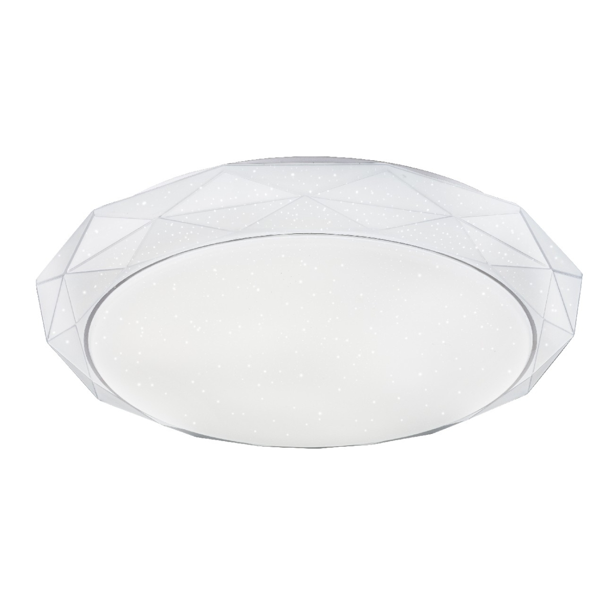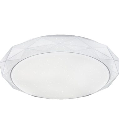 Ova okrugla plafonska lampa (Ø50cm) poentira svojom funkcionalnošću. Napravljena od belog metala i satenirane akrilne boje sa svetlucavim izgledom, uključeni daljinski upravljač nudi brojne mogućnosti za rad. Svetlosni intenzitet sa maksimalnih 3900 lumena može da se spusti na 390 lumena po potrebi. Pomoću daljinskog upravljača takođe možete postepeno da podešavate boju svetla (od tople bele 3000K do hladne bele 6000K) do odgovarajućeg raspoloženja i situacije.