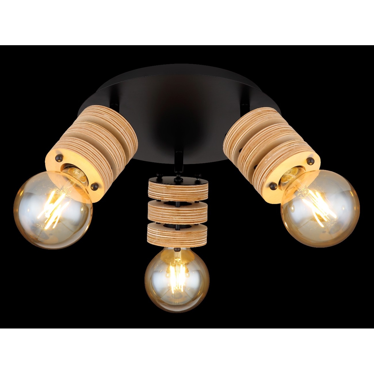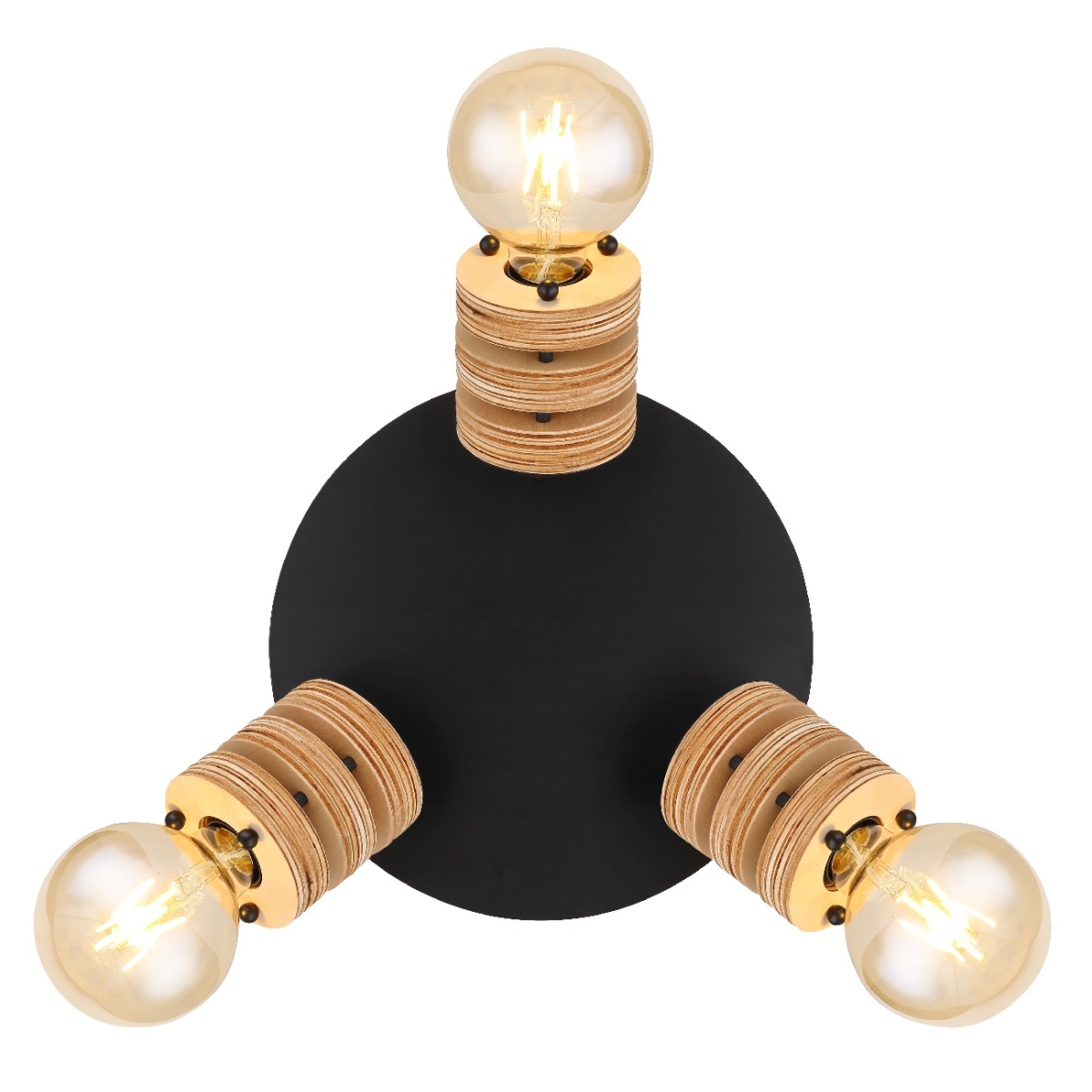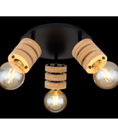 Uz ovaj reflektor iz serije ANGELINE (ø 28 cm) dobijate divan detalj za vaš dom. Tri E27 grla su fiksirana na mat crnu metalnu ploču i obložena MDF prstenovima. Pored toga, možete ih opremiti odgovarajućim sijalicama po vašem izboru, što vam pruža mogućnost da pojedinačno odredite boju svetla i jačinu. Sa drugim modelima iste serije možete upotpuniti celokupnu sliku u enterijeru.