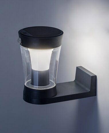 Moderna solarna spoljna zidna lampa Angers može se postaviti na terasu, u baštu ili na spoljašnji zid kuće. Cilindrično svetlo se širi nadole i ima senzor pokreta i svetlosti. Senzor detektuje kretanje sa udaljenosti od 3 do 5 metara pod uglom gledanja od 120°, a senzor svetlosti prilagođava osvetljenost lampe u skladu sa okolnostima. Ovaj sivi model od potpuno plastike je upotpunjen providnim abažurom i izbočenom dekorativnom bazom u obliku slova L na koju je pričvršćena glava lampe okrenuta nadole. Angers ima ugrađen LED izvor svetlosti snage 3 V, svetlosnog toka od 300 lumena sa senkom i 450 lumena bez senke i životnog veka od 15.000 sati. Izvor svetlosti ima temperaturu boje od 4000 K i shodno tome zrači prirodno belo svetlo. Baterija lampe ima napon od 3,7 V i kapacitet od 2.000 mAh. Širina Angera je 130 mm, visina 195 mm, prečnik 120 mm, udaljenost od zida 220 mm. Zaštita IP54 osigurava da je zaštićen od prašine i prskanja vode iz svih pravaca. Njegov idealan opseg radne temperature je -10 °C do 40 °C.