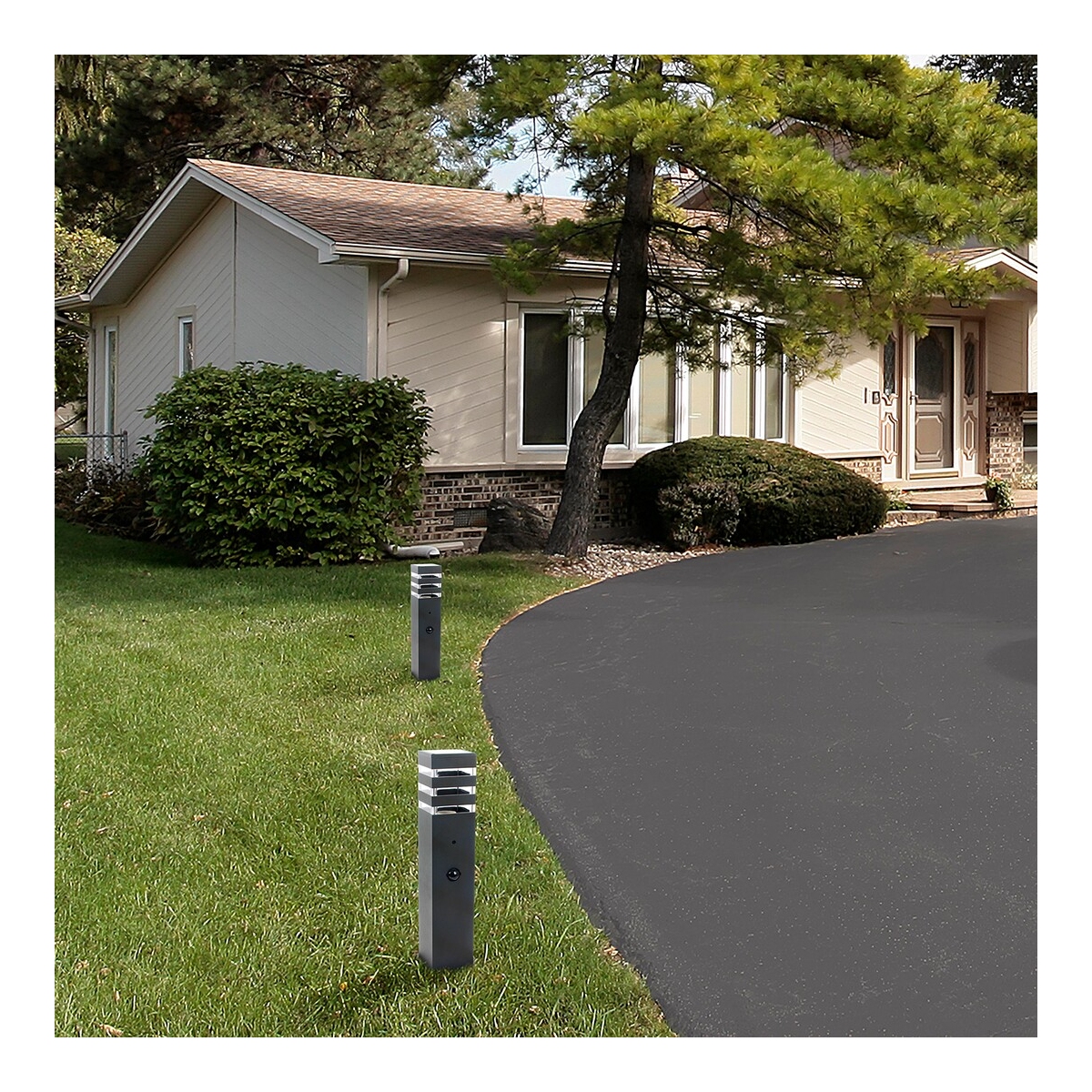 Moderna spoljna podna lampa Ankara sa senzorom pokreta može biti moderan dodatak vašoj bašti bez obzira da li želite da osvetlite neke relevantne delove ili pešačku stazu koja vodi preko bašte. Gornji deo antracit lampe od aluminijuma upotpunjen je providnim staklenim abažurom koji je vidljiv u obliku traka koje pružaju prijatno osvetljenje. Duga, prizmatična lampa završava se ravnim, proširenim postoljem. Ankara se može koristiti sa jednom sijalicom snage do 12 V. Tip grla je E27. Pametni senzor koji prilagođava osvetljenost lampe u skladu sa okolnostima detektuje kretanje sa udaljenosti od 6 do 8 metara pod uglom gledanja od 105°. Ovo spoljno svetlo ima širinu od 130 mm i visinu od 440 mm. Zaštita lampe IP44 obezbeđuje da je zaštićena od upada predmeta prečnika do 1 mm i od prskanja vode iz bilo kog smera. Spoljno stojeće svetlo Ankara se isporučuje bez izvora svetlosti.