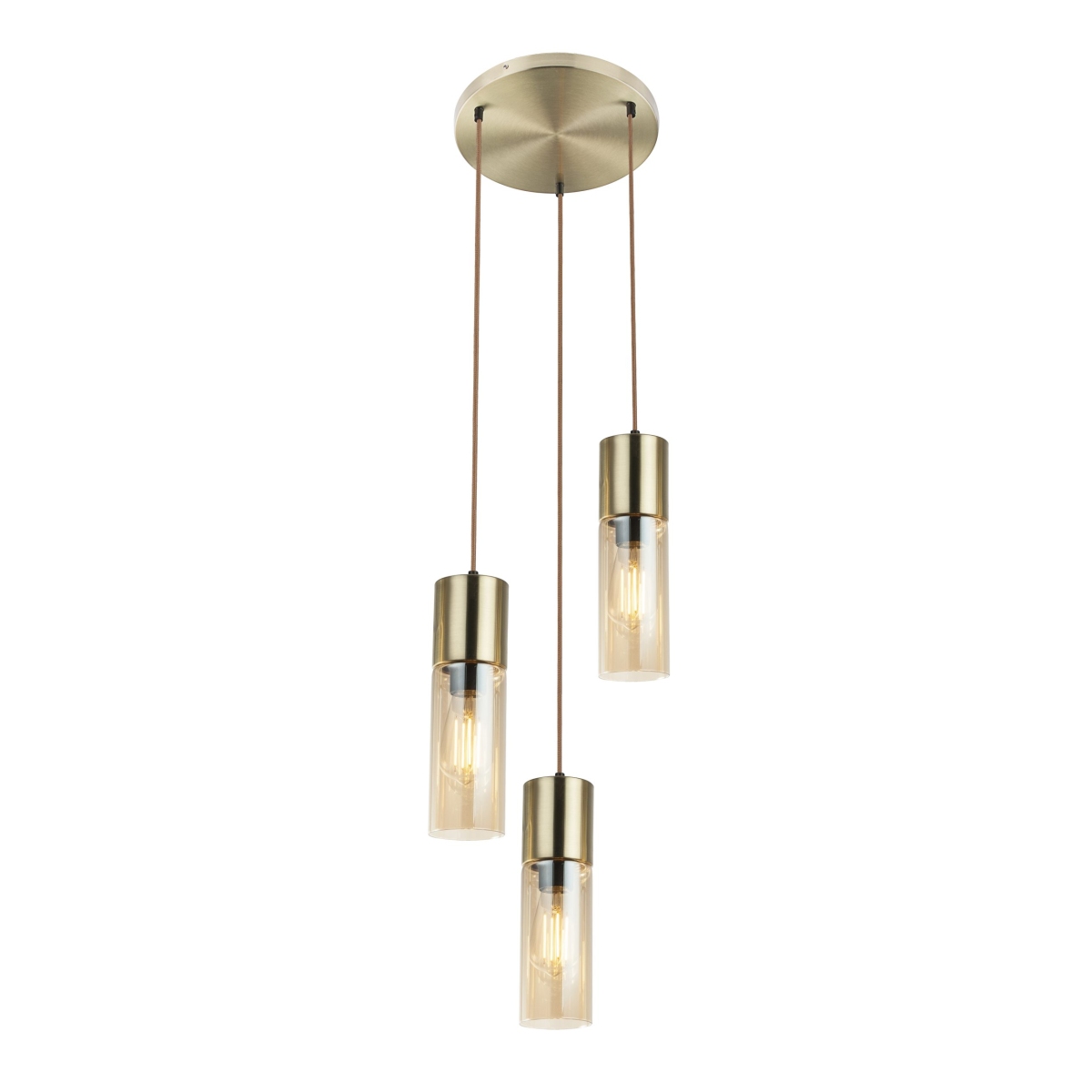 Viseća lampa Anika je atraktivno osvetljenje u modernim dnevnim boravcima. Kabl od tekstila smeđe boje, dužine 150 cm, pričvršćen je za mali okrugli plafonski nosač u mat boji mesinga. Na donjem kraju vise uski, elegantni stakleni cilindrični abažuri. Zahvaljujući ćilibarnom staklu, svetlost deluje veoma prijatno toplo i time doprinosi prijatnijoj atmosferi života. Viseća lampa je savršeno usklađena sa savremenim stilom nameštaja i može se kombinovati sa drugim proizvodima iz serije. Zahvaljujući E27 grlu, imate mogućnost slobodnog izbora sijalice do maksimalno 25 vati. U zavisnosti od toga koju boju svetlosti i intenzitet svetlosti želite. Preporučujemo LED, zbog uštede energije i dugotrajnosti. Kombinujte ovu divnu viseću lampu sa drugim proizvodima iz serije Anika i dozvolite sebi da vas očara elegantni dizajn.