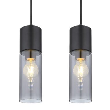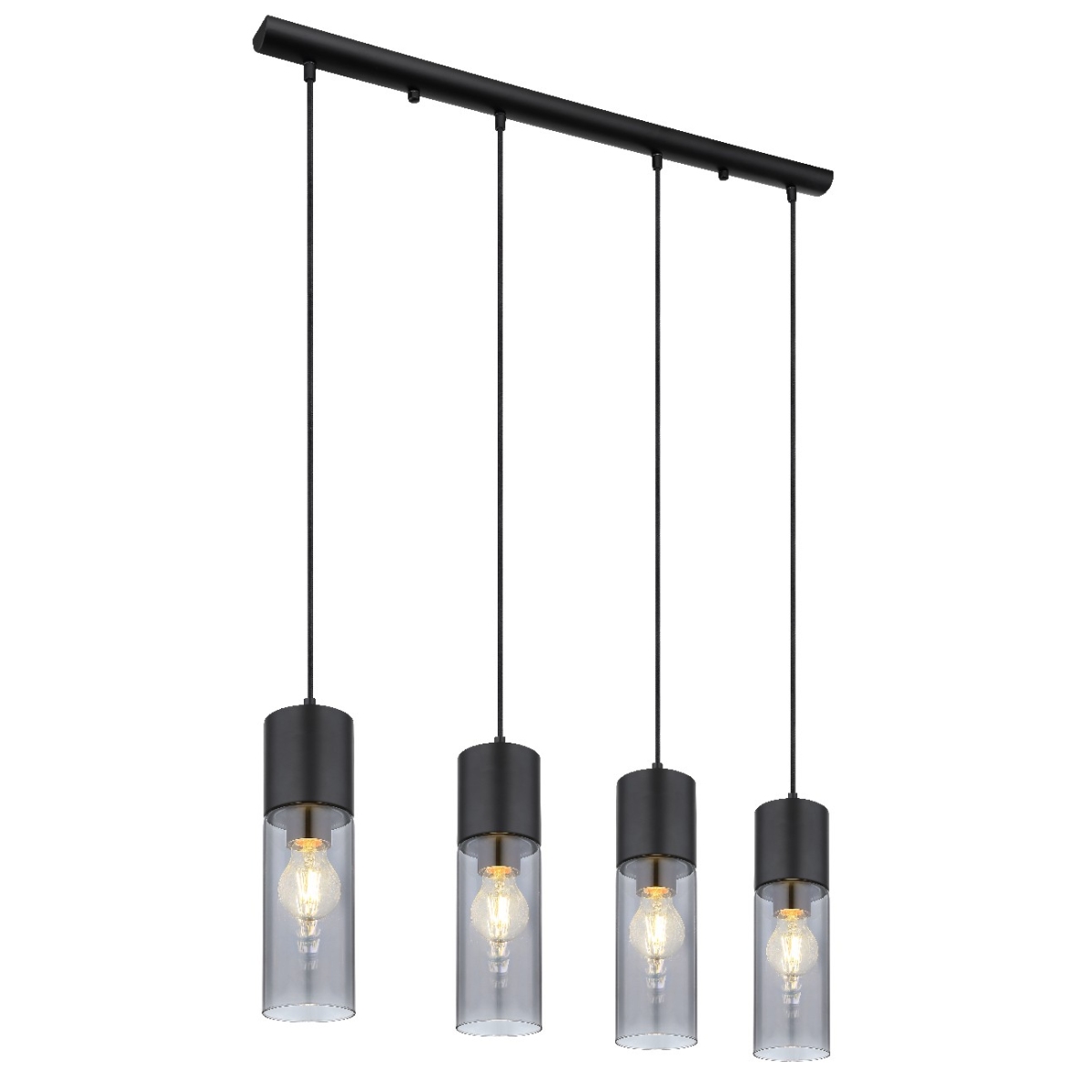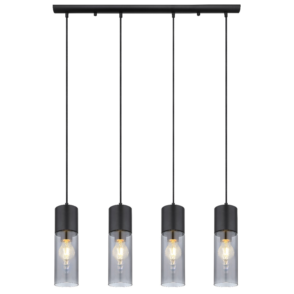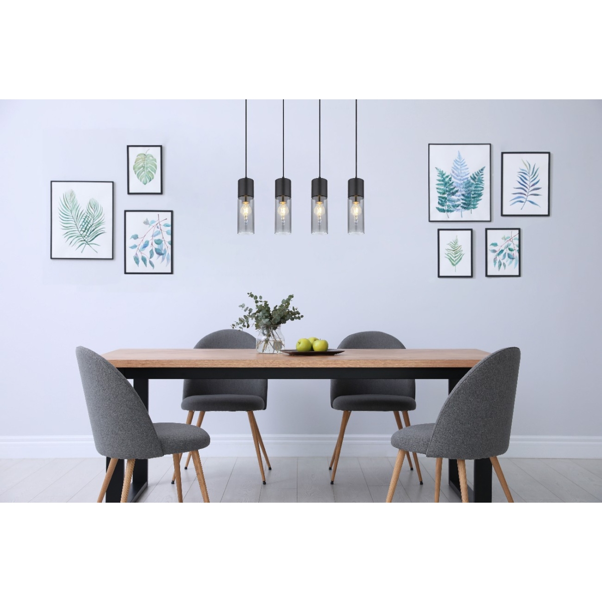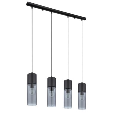 Ova jednostavna viseća lampa iz serije Anika karakteriše se bojom i dizajnom. Na uskom crnom metalnom kućištu (80×9 cm) nalaze se četiri crna kabla do svakog E27 grla sa cilindričnim abažurom od dimljenog stakla. E27 grla vam omogućavaju da slobodno birate, do maksimalne snage od 25 vati, putem boje svetlosti i osvetljenja. Sa drugim modelima ove serije možete super upotpuniti svoj dnevni boravak.