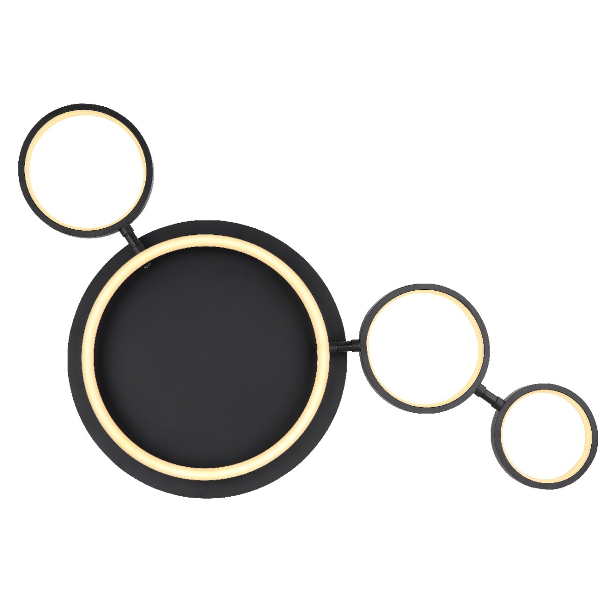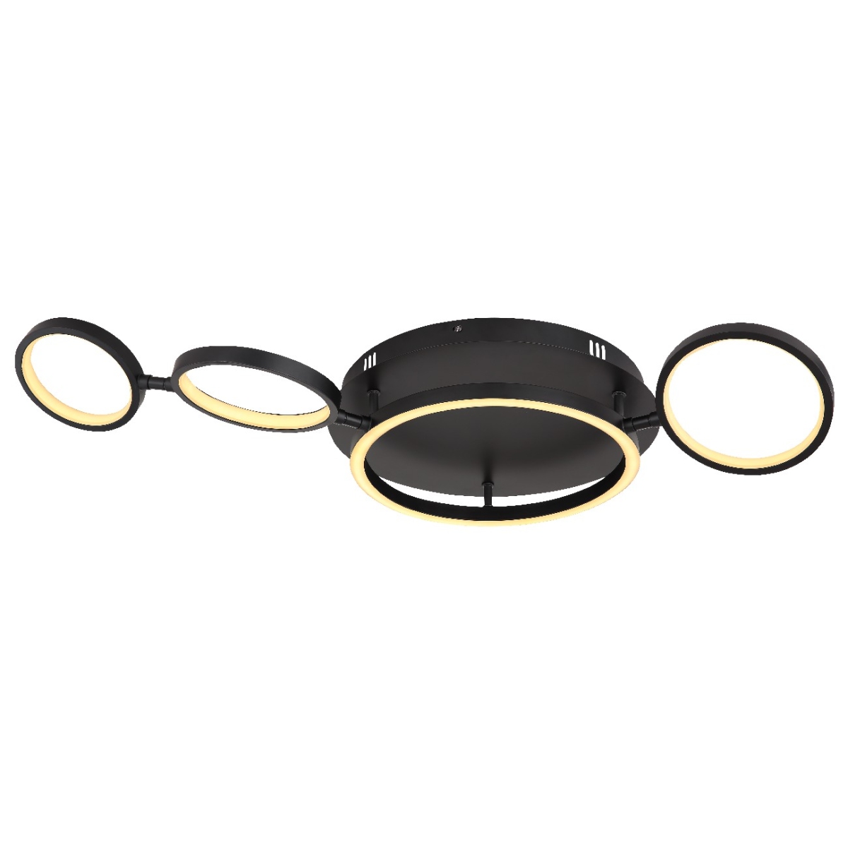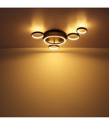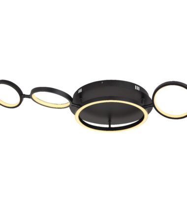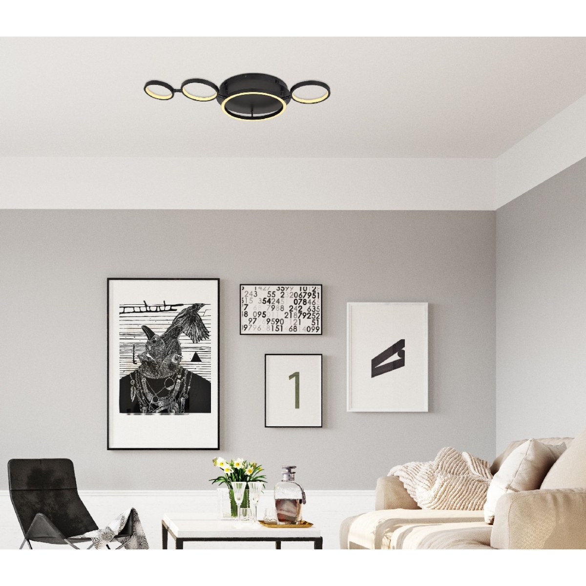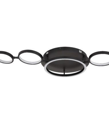 Ova plafonska lampa serije ANTONIUS izdvaja se po izuzetnom i modernom dizajnu i postaje centar vašeg enterijera. Lampa je sastavljena od četiri crna prstena u različitim veličinama, svaki sa LED panelom, koji emituju prijatno toplo belo svetlo (3000 Kelvina) i takođe je podesiva po visini.