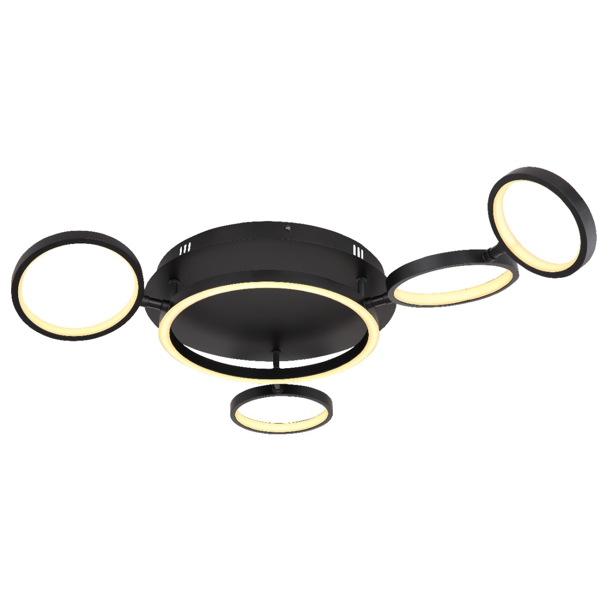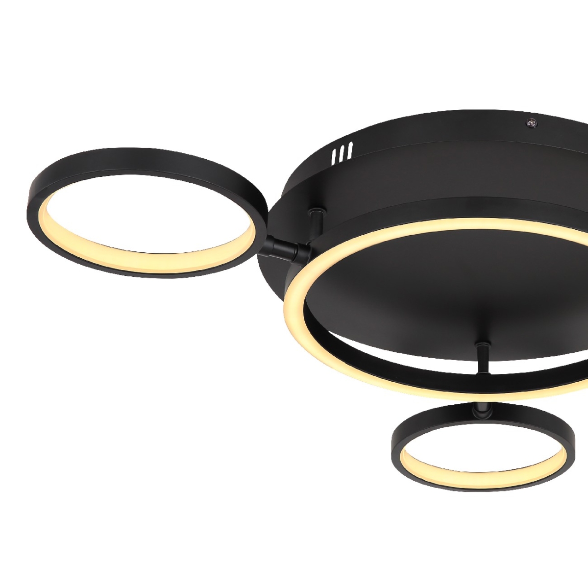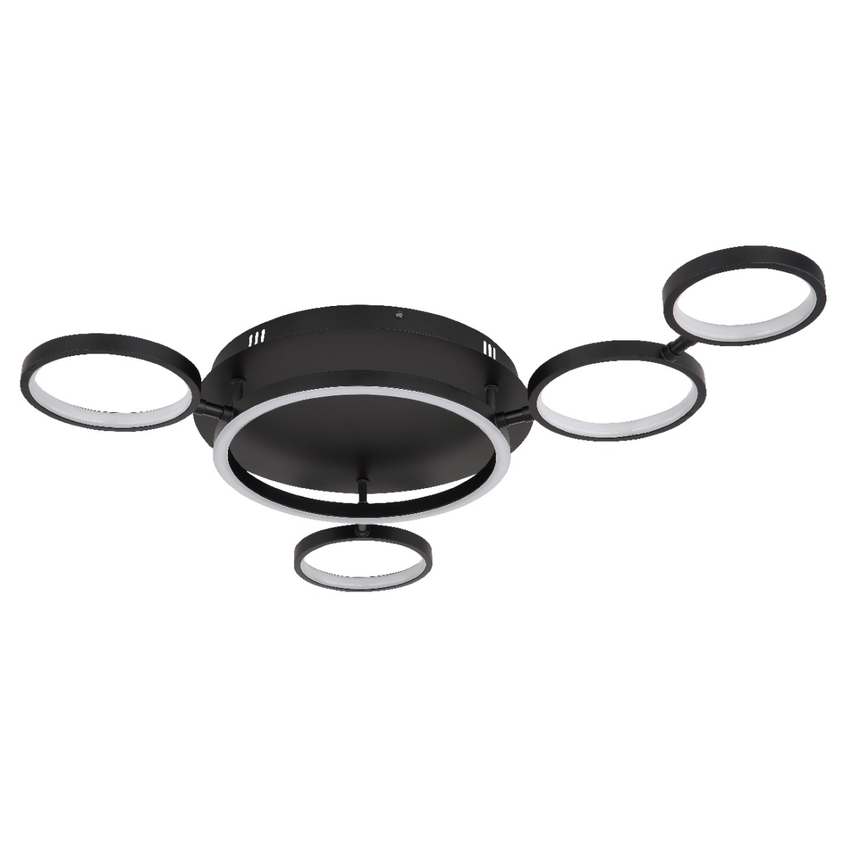 Ova plafonska lampa serije ANTONIUS izdvaja se po izuzetnom i modernom dizajnu i postaje centar vašeg enterijera. Lampa se sastoji od pet crnih prstenova u različitim veličinama, svaki sa LED panelom, koja emituje prijatno toplo belo svetlo (3000 Kelvina) i takođe je podesiva po visini.