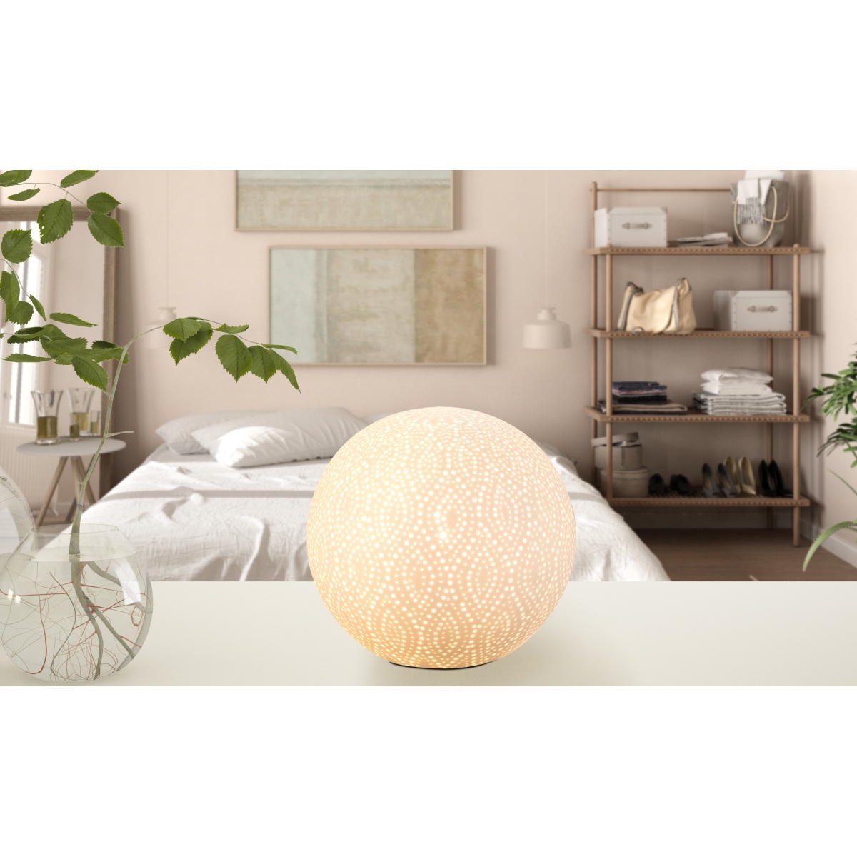 Uz ovu umetnički belu stonu lampu, iz serije ASKJA, postavljaju se prijatni akcenti. Koristi se, na primer, u dnevnoj sobi, ovaj model svojim prelepim dekorativnim šarama može doprineti elegantnom okruženju. Ova lampa je kontrolisana prekidačem za isključivanje i opremljena je E14 grlom koja vam omogućava slobodan izbor sijalica (max. 25W). Pomoću drugih modela ove serije možete upotpuniti svoju sliku.