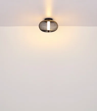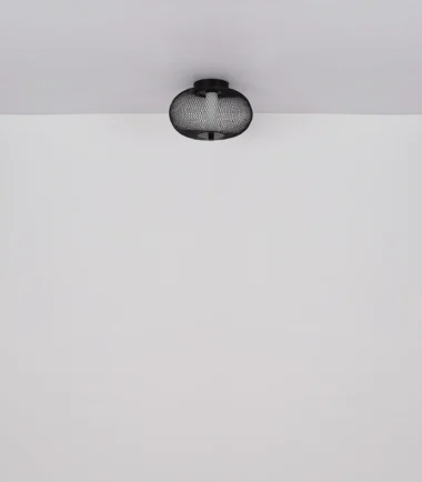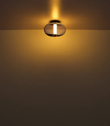 Plafonska lampa ASTARI je stilski dodatak modernim životnim prostorima. Sa prečnikom od 350 mm i visinom od 240 mm, impresionira svojim elegantnim dizajnom napravljenim od mat crnog metala i metalne mreže. Opalna plastika obezbeđuje meku raspodelu svetlosti i prijatnu atmosferu. Uključena LED dioda snage 15W nudi izvor svetlosti od 1500 lm i izlaz od 1250 lm na toploj temperaturi boje od 2700K. Ova plafonska lampa kombinuje estetiku sa funkcionalnošću i savršeno se uklapa u svaki dom.