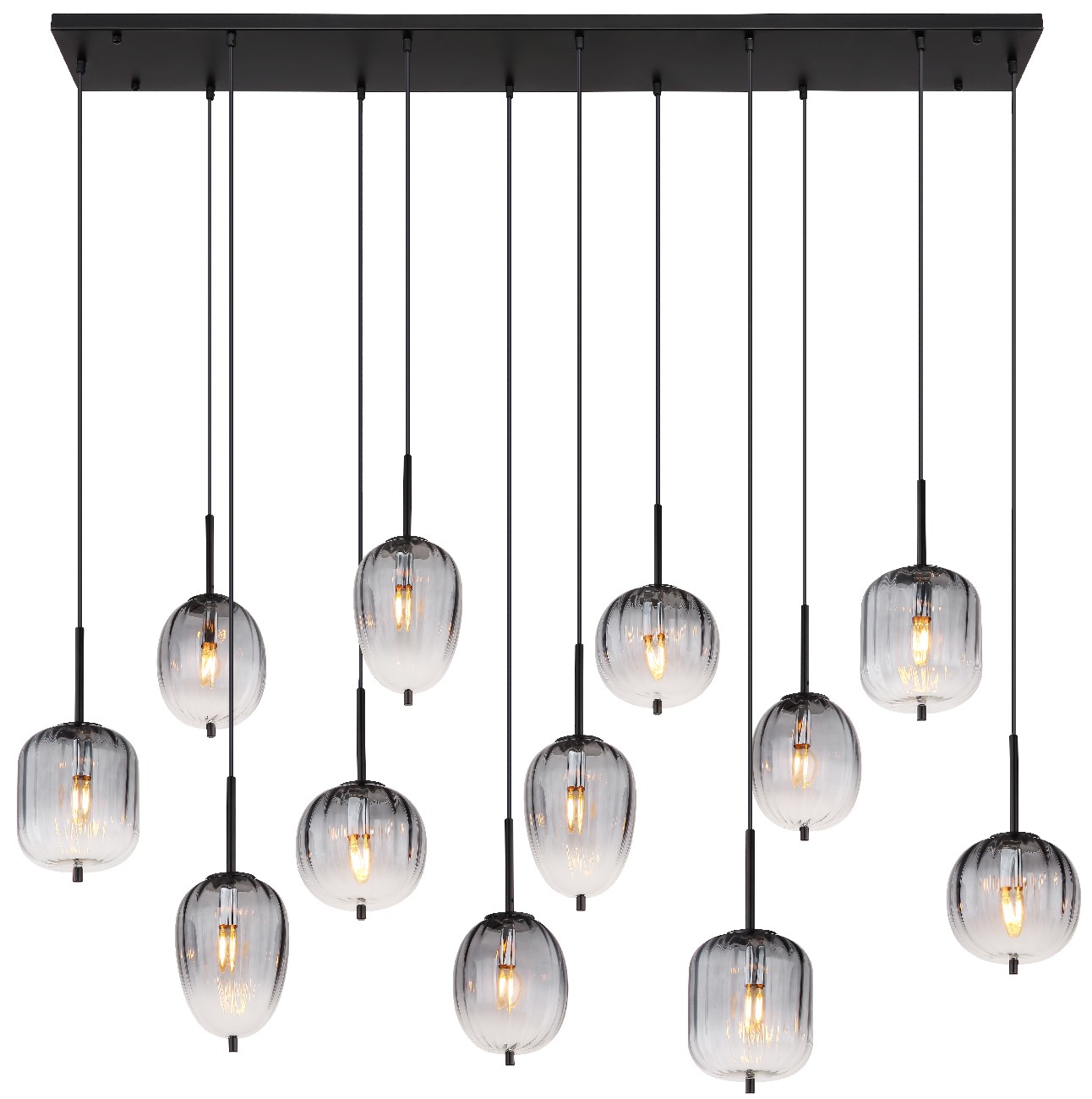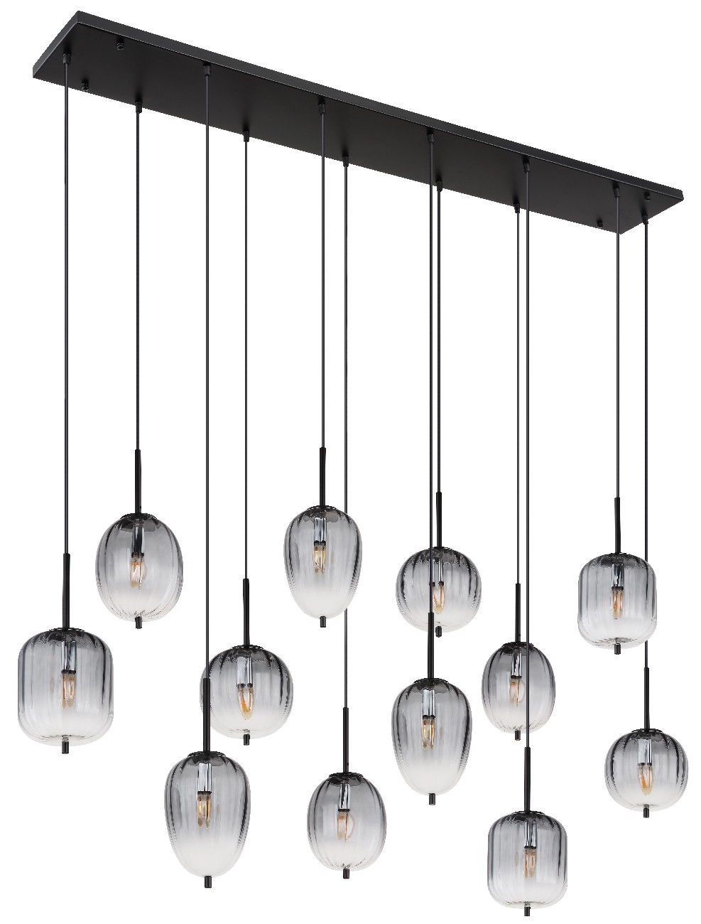 Viseća lampa ima dužinu od 1600 mm, širinu od 340 mm i visinu od 1300 mm. Napravljena je od crnog, mat metala i dimljenog stakla sa jasnim gradijentom. Kabl je crn i napravljen od PVC-a. Prečnik stakla varira između 15,8 cm, 16,4 cm, 16,5 cm i 18,5 cm. Viseća lampa je moderan i elegantan element osvetljenja, savršen za dnevnu sobu, trpezariju ili spavaću sobu. Sa svojim dimljenim staklom i jasnim gradijentom, stvara prijatnu atmosferu u svakoj prostoriji. Viseća lampa se lako instalira i može se sastaviti za nekoliko minuta.
