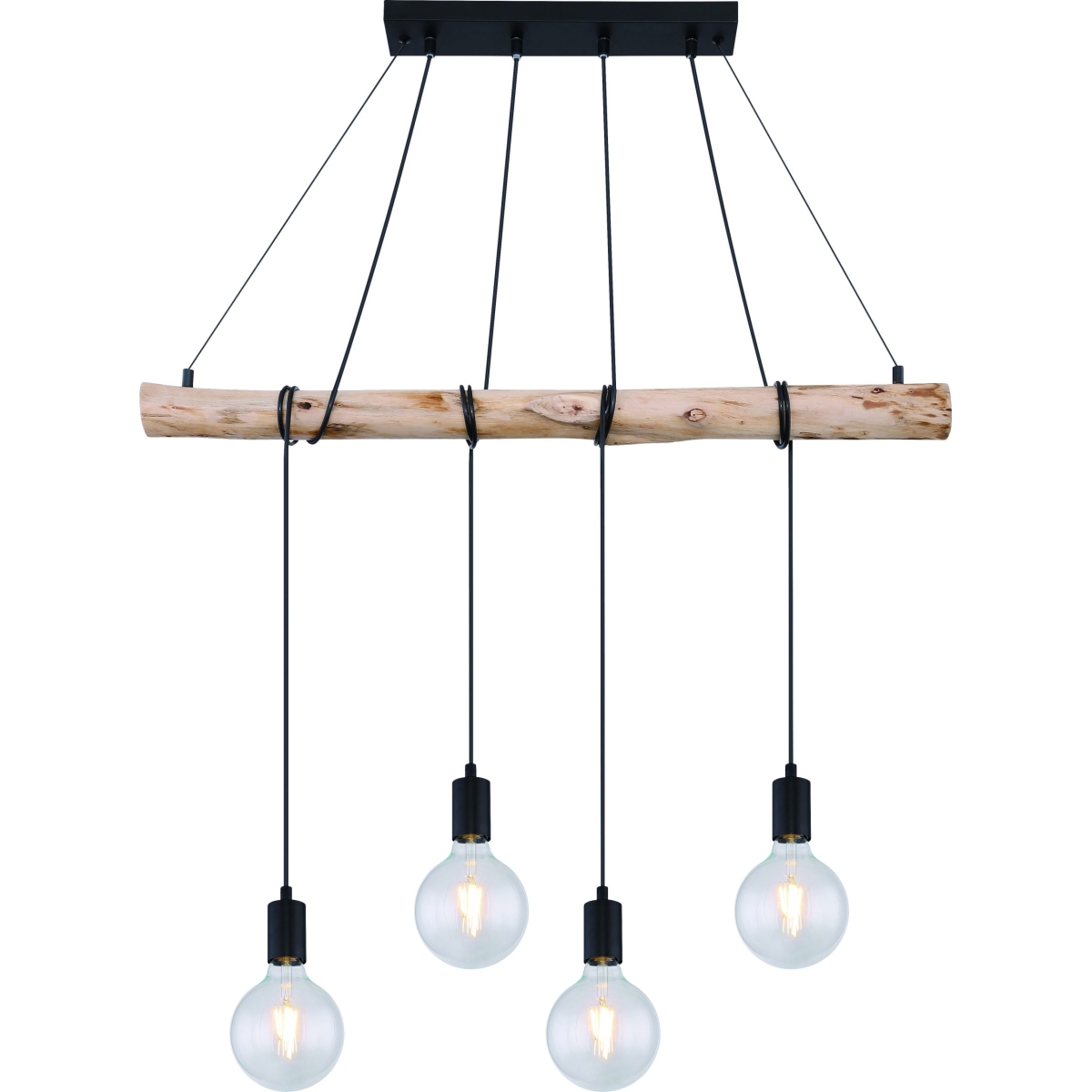 Sa ovom impresivnom drvenom visilicom i trendi crnim kablovima za obmotavanje, dobijate moderan dom koji privlači poglede. Koristite lampu za dnevnu sobu, kao udobno osvetljenje za trpezariju ili iznad kuhinjskog stola. Možete koristiti sijalice do maksimalne snage od 4×60 vati. Svaka E27 sijalica je vidljiva, što omogućava alternativno korišćenje ukrasne sijalice. Preporučujemo korišćenje LED sijalice za još veću održivost. Lampa impresionira svojom posebnom mešavinom materijala, dočarava lepe trenutke svetlosti i osigurava udobnu životnu situaciju.