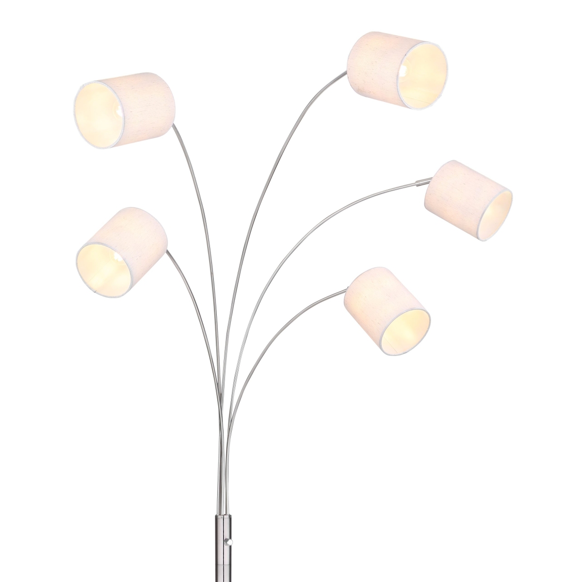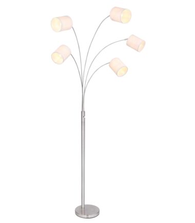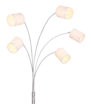 Ova podna lampa iz serije AVA je predivan dodatak vašem enterijeru svojim stilskim dizajnom nikl-mat metala i tekstila u boji peska. Podna lampa od 204 cm ima pet cilindričnih tekstilnih abažura, od kojih je svaki prikačen na zakrivljenu, nikl-mat metalnu šipku. Pored toga, tekstilni abažur možete opremiti E14 sijalicama po vašem izboru, što vam daje mogućnost da u skladu sa svojim idejama odredite boju svetla i jačinu. Pomoću ostalih artikala iste serije možete da dovršite celokupnu sliku u svoja četiri zida.