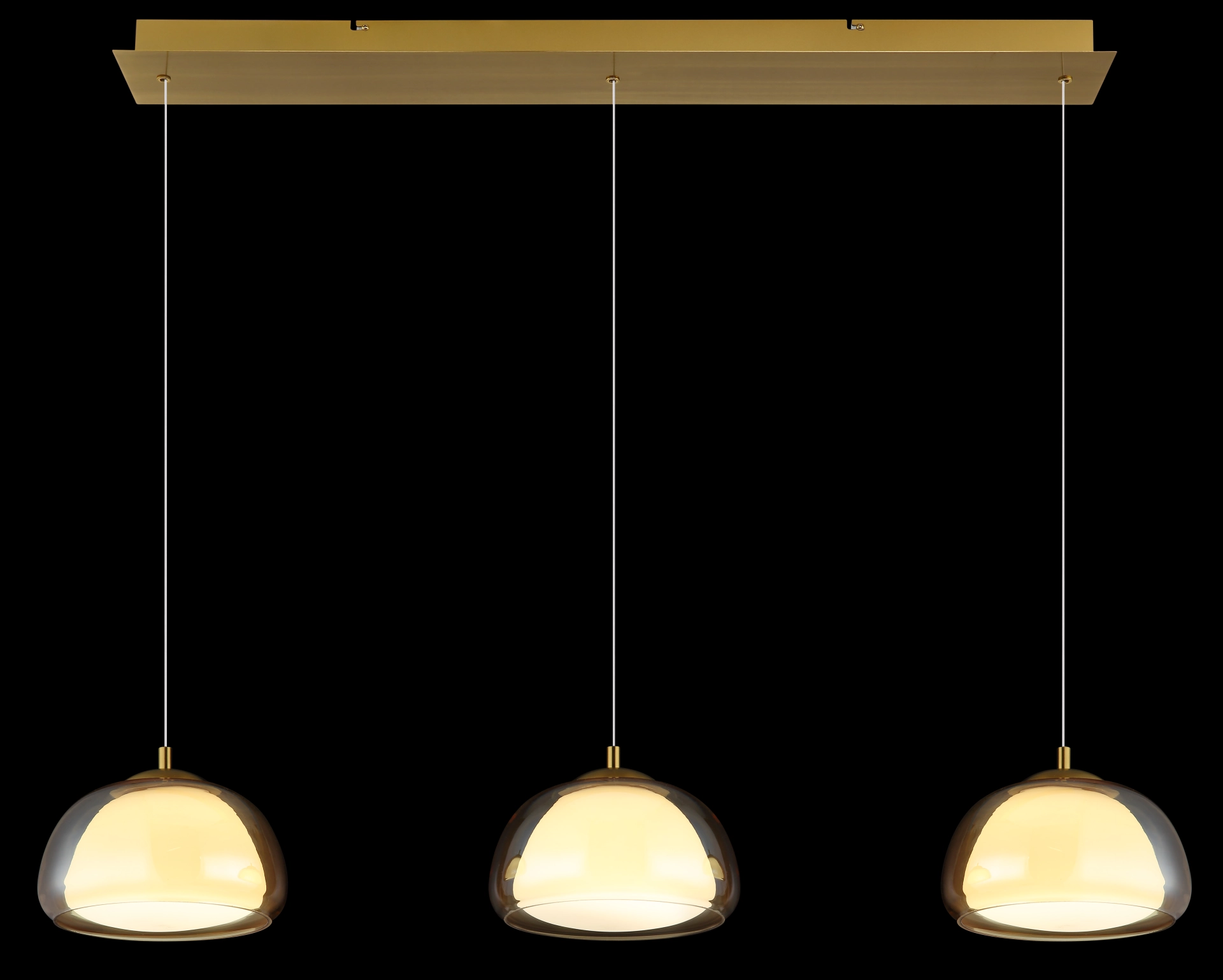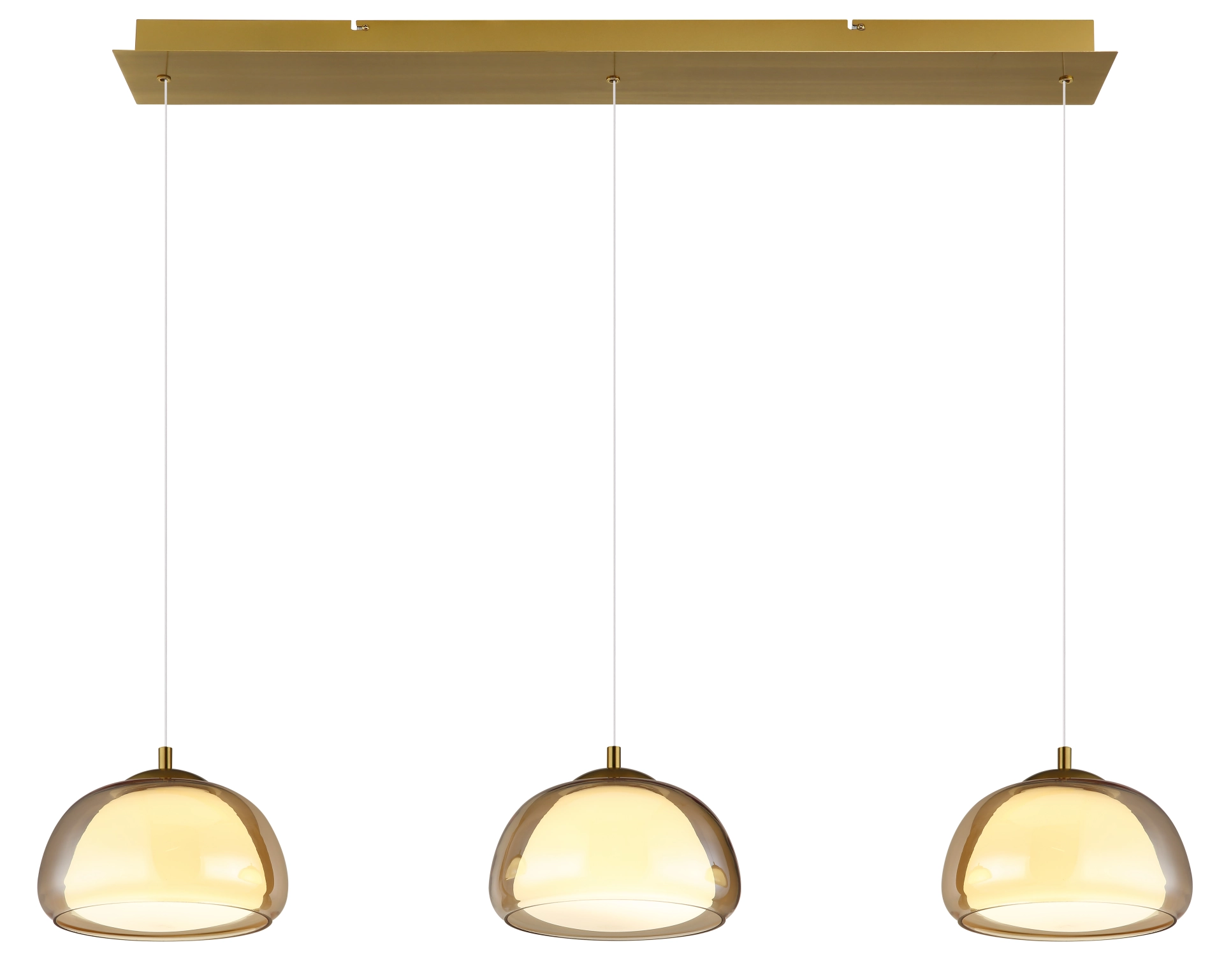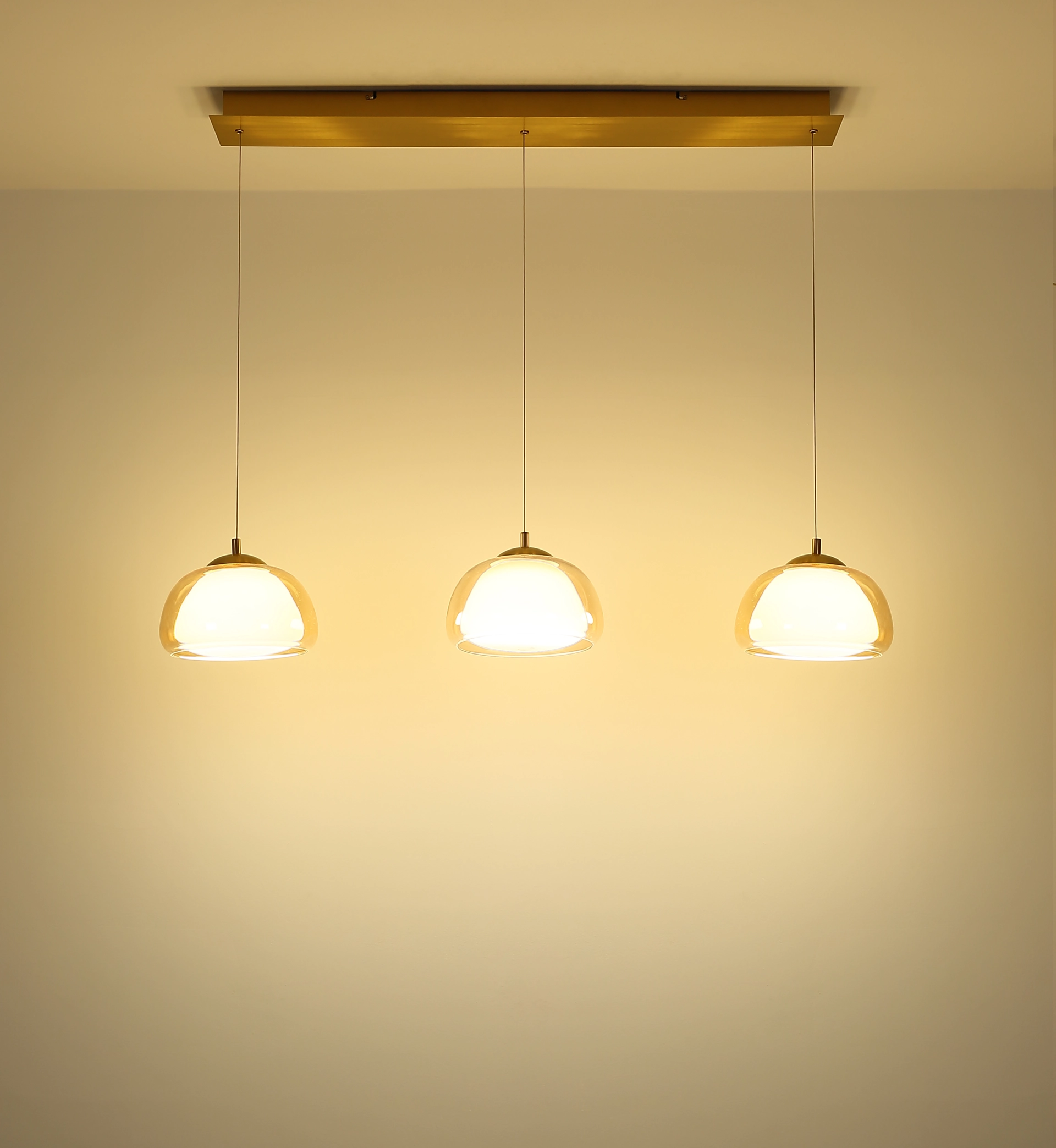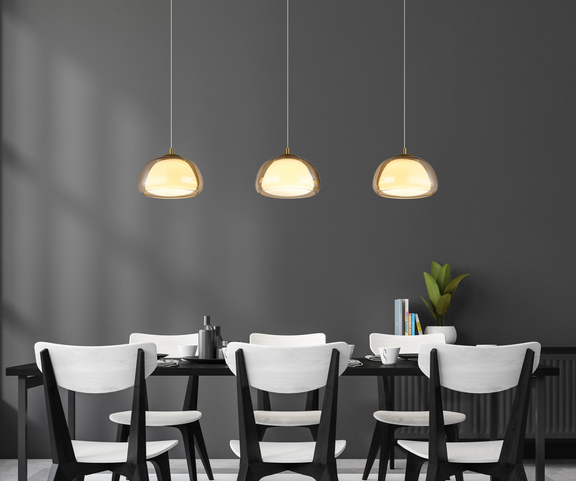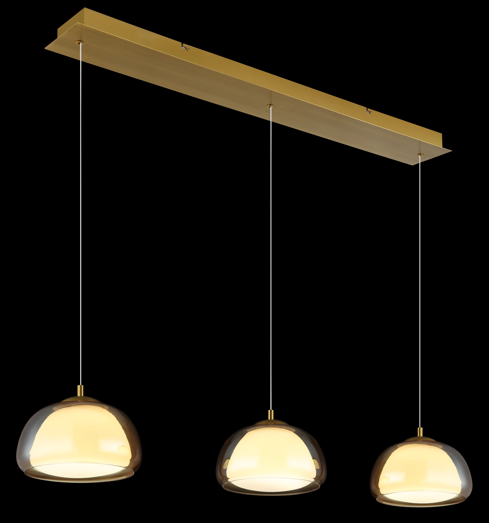 Viseća lampa AVILA kombinuje elegantan dizajn sa modernom tehnologijom osvetljenja i nudi stilsko rešenje za osvetljenje trpezarije i dnevne sobe. Tri elegantna stakla sa spoljnim staklom boje ćilibara i unutrašnjim staklom boje opala vise na ravnoj šini napravljenoj od brušenog, zlatnog metala – pravi ukras za oči sa elegantnim dodirom. Integrisana LED tehnologija obezbeđuje impresivan svetlosni izlaz od 2700 lumena i omogućava kontinuirano podešavanje boje svetlosti od toplih 2700 K do hladnih 6500 K. Sve funkcije – uključujući funkciju zatamnjenja, izbor temperature boje, funkciju memorije i noćno svetlo – mogu se lako kontrolisati pomoću priloženog daljinskog upravljača. AVILA stvara pravo svetlosno raspoloženje u bilo kom trenutku – bilo da je udobno, funkcionalno ili atmosfersko. Zahvaljujući elegantnom dizajnu i visokokvalitetnim materijalima, ova viseća lampa postaje stilski vrhunac iznad trpezarijskog stola ili u dnevnoj sobi. Idealna za svakoga ko želi da kombinuje bezvremenski dizajn sa modernom funkcionalnošću.