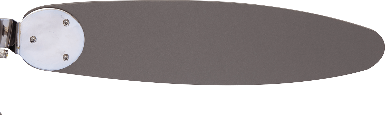Sa reverzibilnim krilima u boji grafita i bukve, ovaj prelepi plafonski ventilator se usklađuje sa različitim stilovima nameštaja. Takođe ima mnogo funkcija: 3-stepenu kontrolu brzine i snage, prekidač za povlačenje, kao i rotaciju ulevo i udesno. Njegov prečnik je 132 cm i može se instalirati na kosi krov ako se ne prekorači nagib od 30°. Maksimalna snaga motora je 60 W.