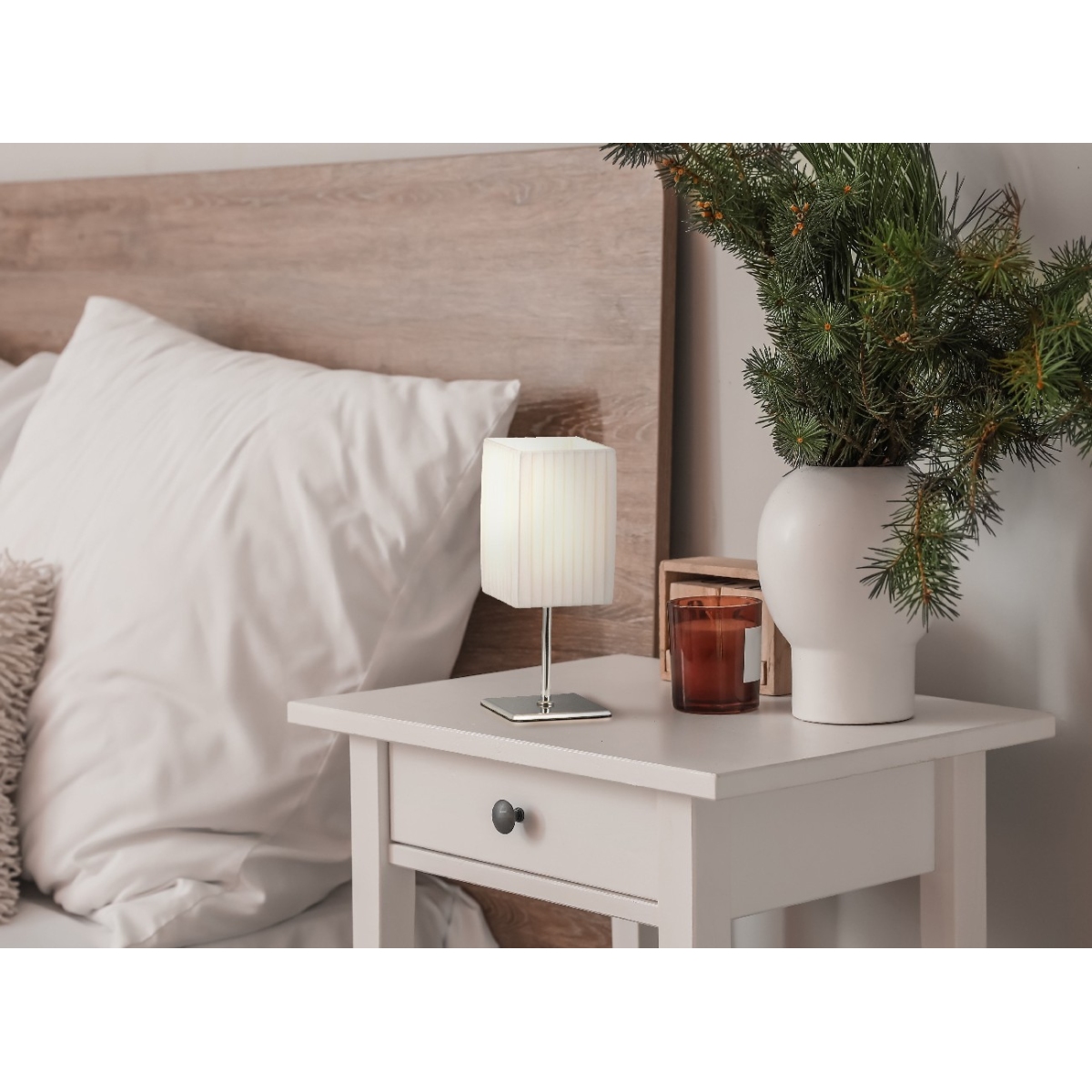 Sa ovom stonom lampom svetleći akcenti su postavljeni i ona se ističe se svojim jednostavnim dizajnom. Bilo da se koristi u dnevnoj sobi, na bočnom stolu ili u spavaćoj sobi kao lampa pored kreveta, ovaj model odlično doprinosi udobnoj atmosferi. Jednostavan rad obezbeđuje prekidač za isključivanje.